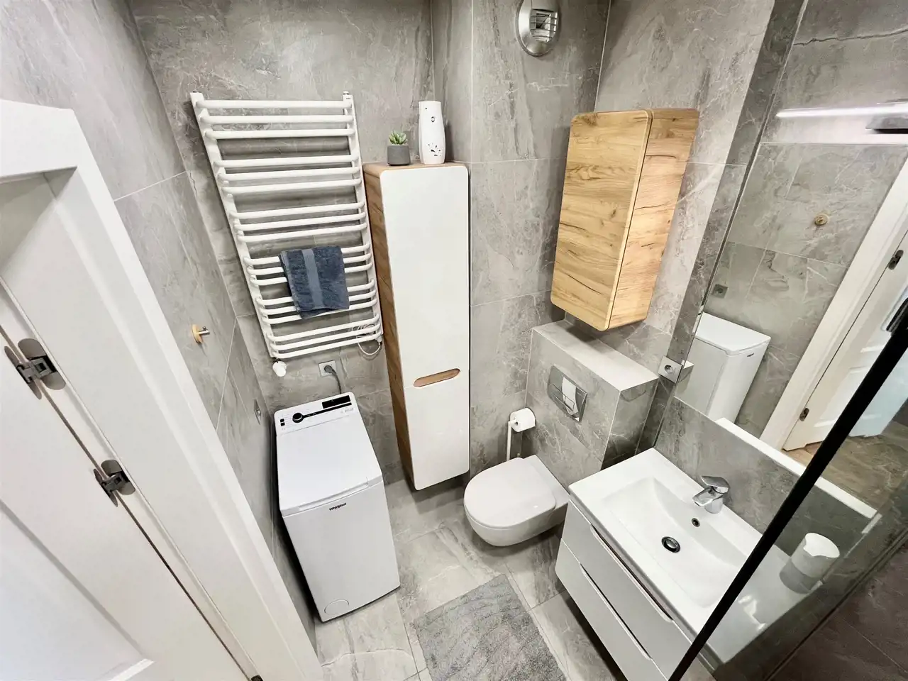 Na wyposażeniu min :odkurzacz, deska do prasowania, suszarka, żelazko, mop.