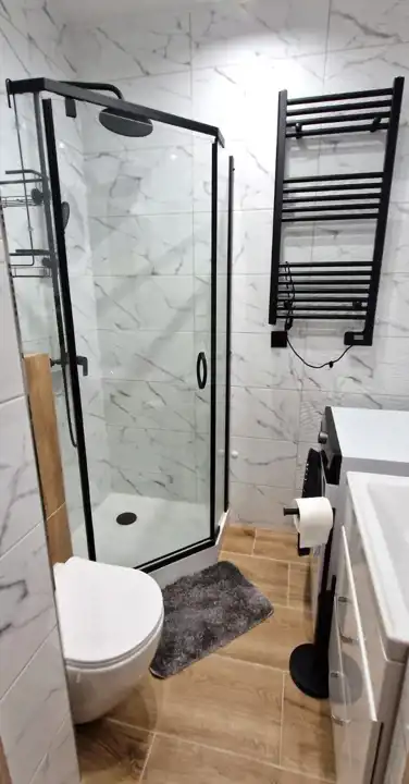 - łazienka wyposażona w: WC, umywalkę, prysznic, pralkę,