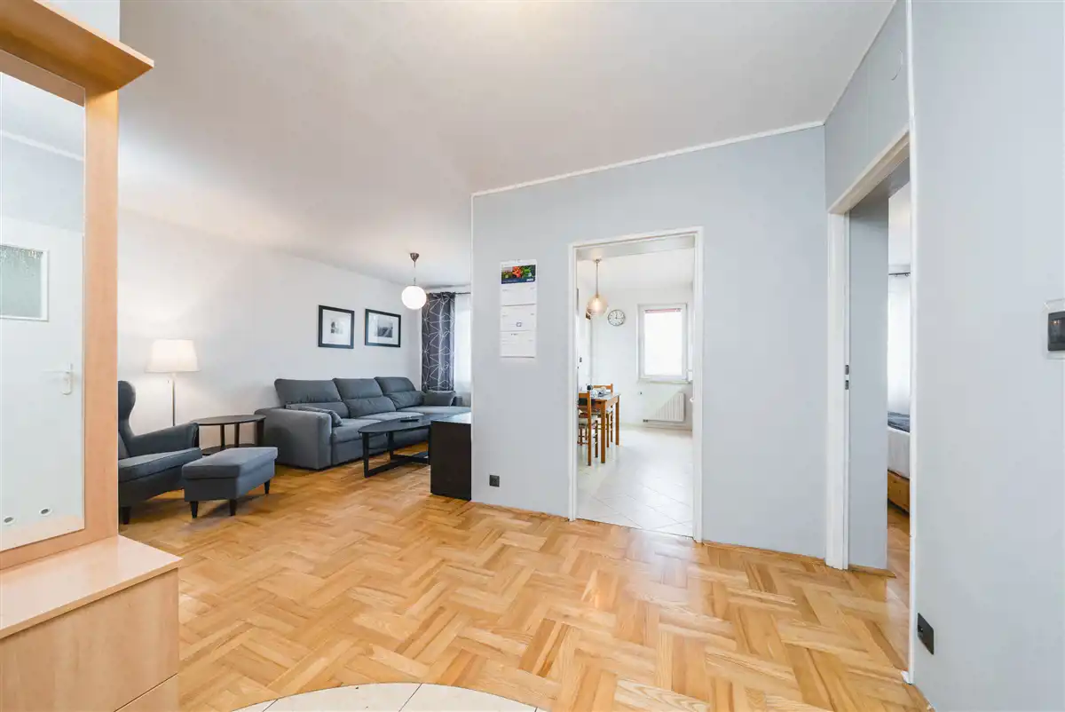 Do wynajęcia komfortowe mieszkanie 2 pokojowe z osobną kuchnią o powierzchni 53,99 m2 usytuowane na 3 piętrze (blok 5 piętrowy) na osiedlu mieszkaniowym przy ul. Kuźnicy Kołłątajowskiej w Krakowie. Mieszkanie w pełni umeblowane. Mieszkanie na etapie deweloperskim zostało dodatkowo wyposażone w oryginalny parkiet, kamienne parapety oraz profesjonalne drzwi antywłamaniowe (Dierre).