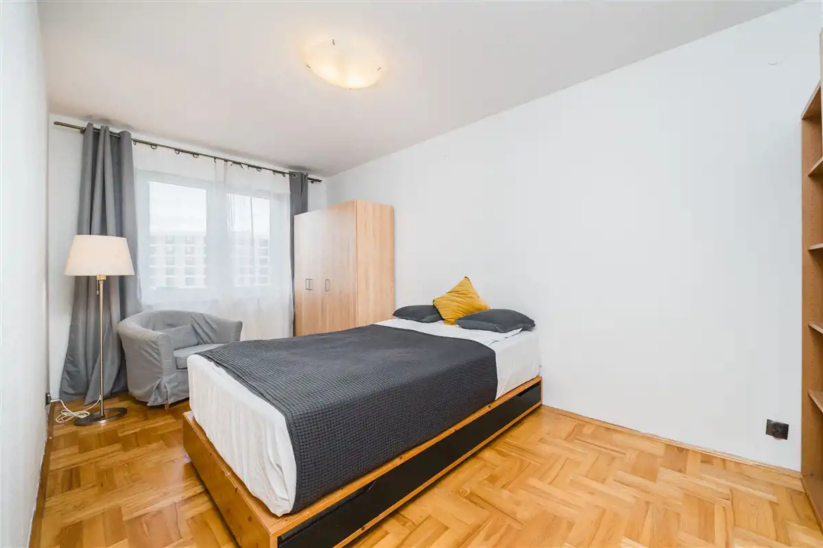 - pokój o powierzchni 13 m2, umeblowany: łóżko 160x200cm, ze schowkami, dwie wolnostojące szafy, fotel, stolik.
