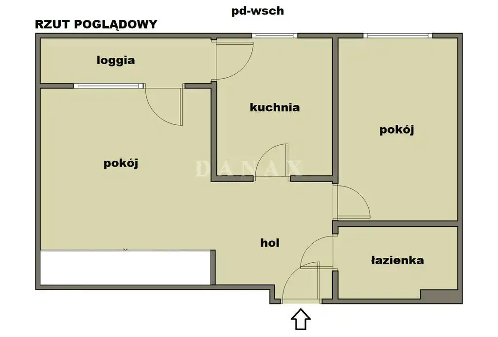 - przedpokój otwarty na salon, wyposażenie: wieszaki, szafka na buty z lustrem.