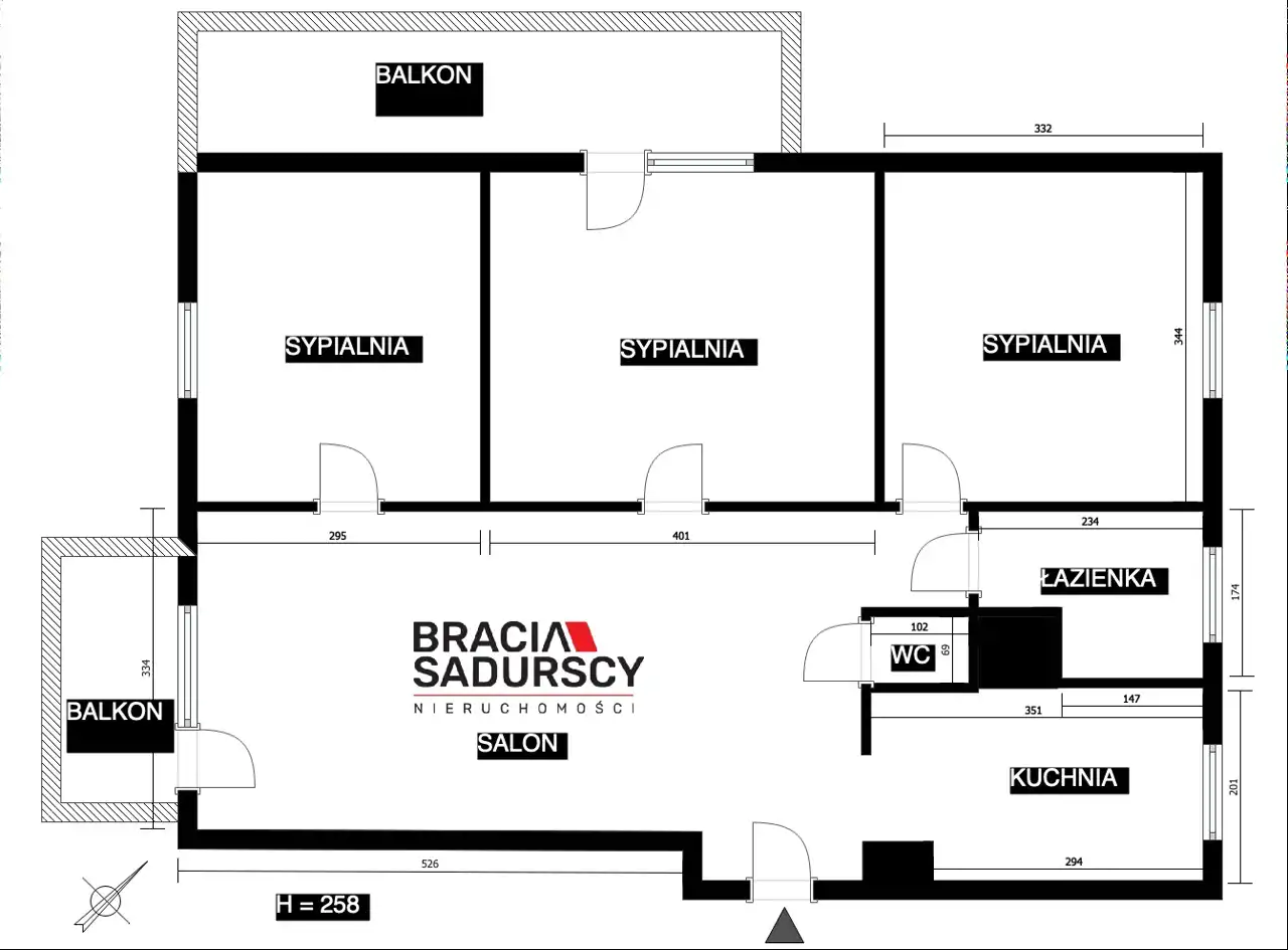 - Przestronny salon z balkonem – jasne wnętrze z dużą ilością naturalnego światła,- 2 x ustawna sypialnia ( w tym jedna z dodatkowym balkonem loggia) – zapewnia prywatność i komfort,