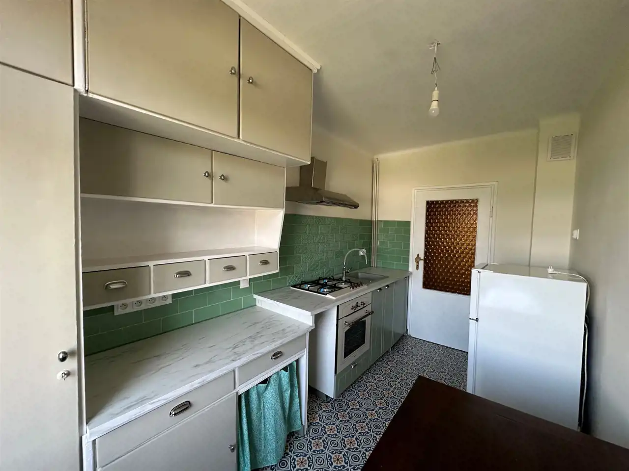 3. Kuchnia ok. 8,5 m2 (meble kuchenne, lodówka, płyta gazowa, piekarnik, okap, stół + 2 krzesła, pralka)