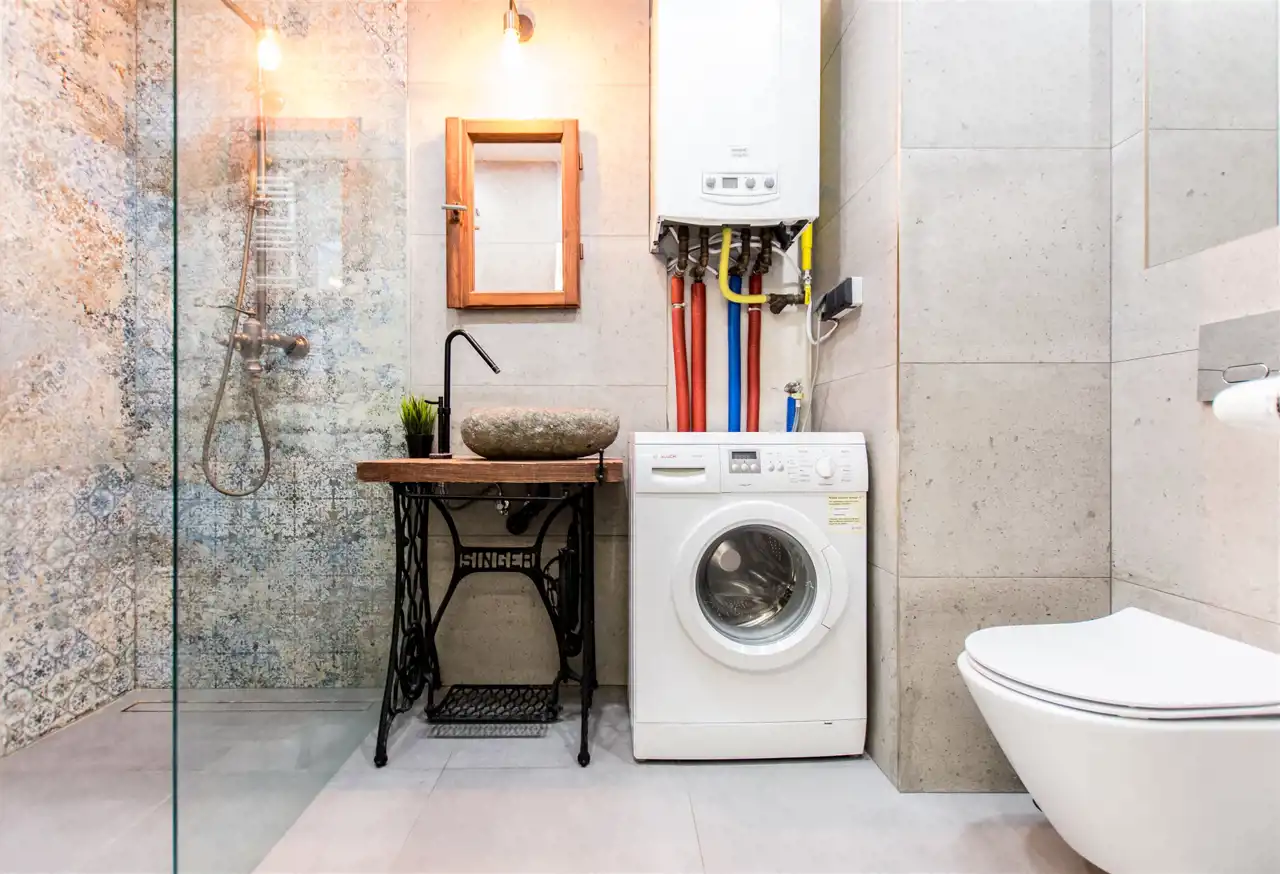 - łazienka z prysznicem i pralką.