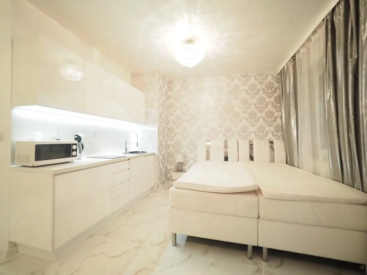 - Pokój z wyjściem na 16m2 balkon z widokiem na Wisłę, do pokoju przynależy w pełni wyposażona kuchnia (zmywarka, lodówka, płyta indukcyjna)