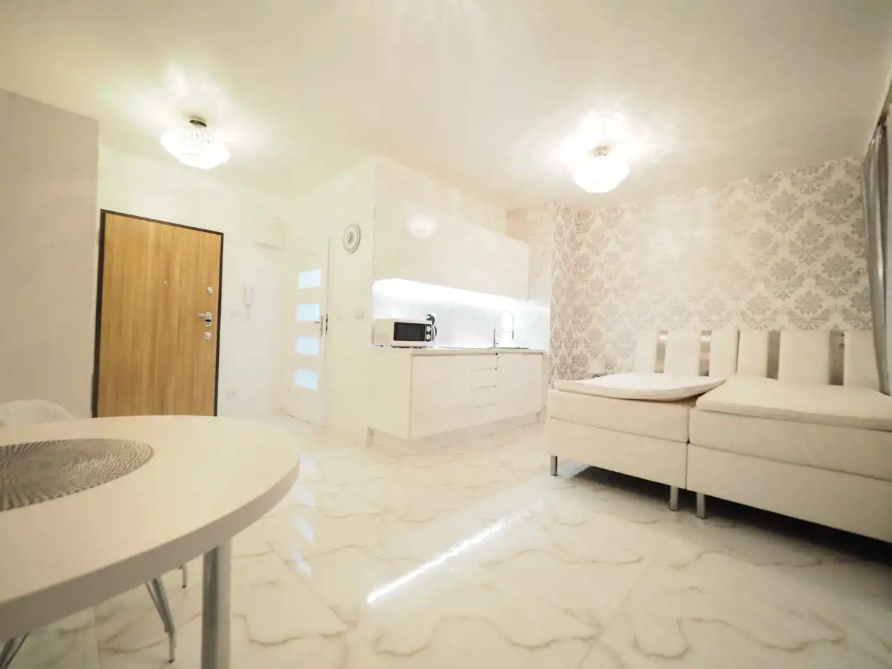 Mieszkanie znajduje się na prestiżowym osiedlu, w cichej i spokojnej okolicy z widokiem na Wisłę. Położenie lokalizacji jest idealne dla osób pracujących jak i dla studentów oraz klientów korporacyjnych. W apartamentowcu mamy Żabkę, kosmetyczkę, barbera, siłownię.