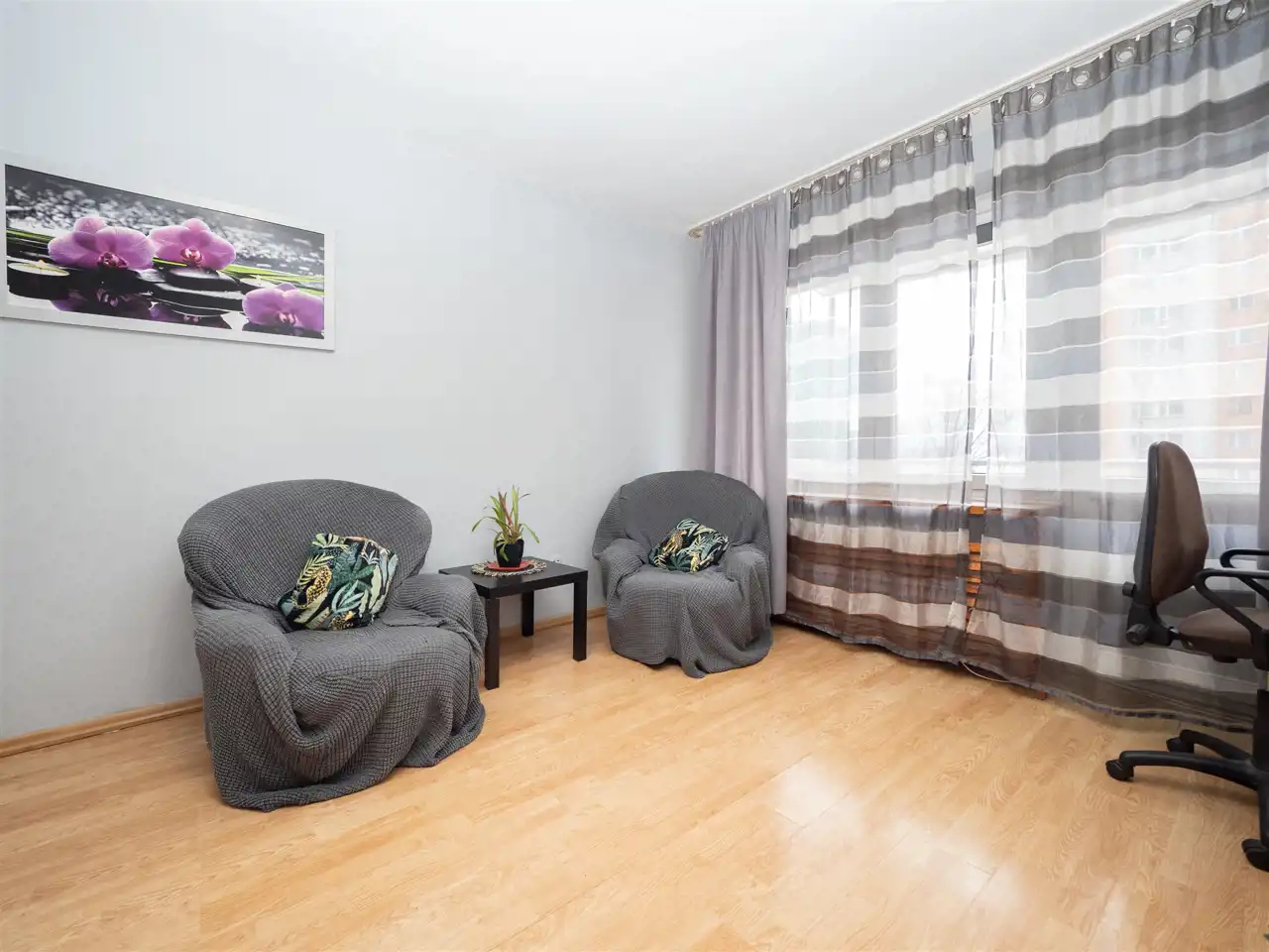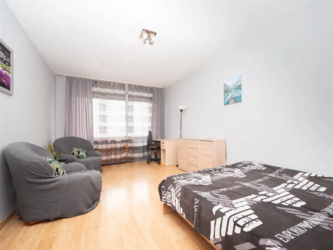 The apartment also features a balcony. The interior is functional and fully furnished, including two large comfortable beds and plenty of wardrobes offering generous storage space. Pets are welcome.