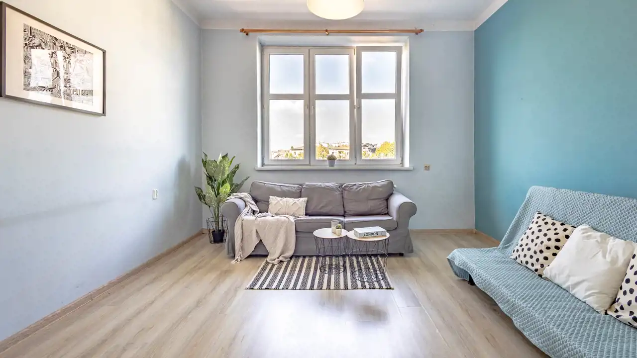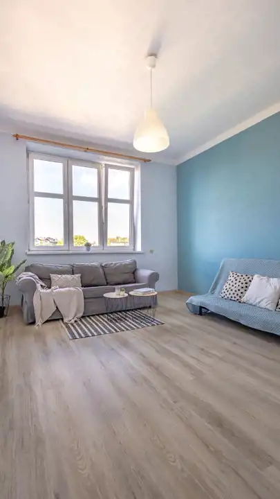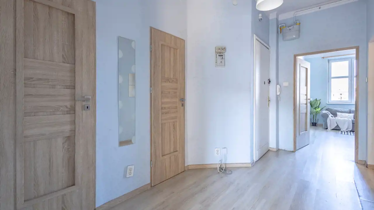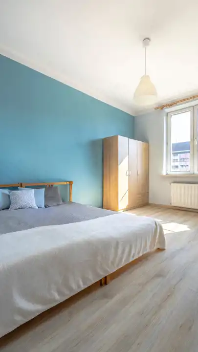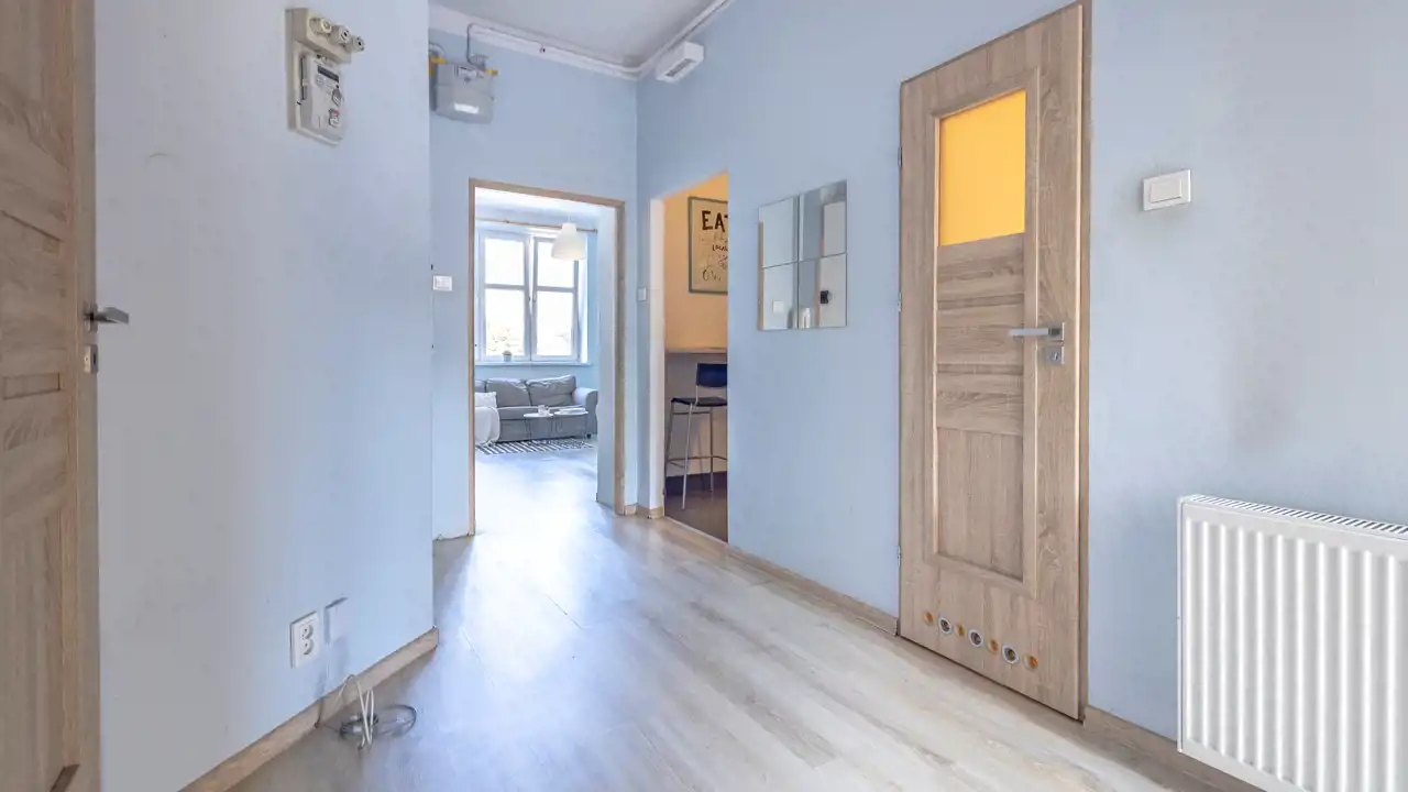Znajduje się na 4 piętrze w 5 piętrowej kamienicy z 1938 roku. Składa się z kuchni, 2 osobnych pokoi, 2 schowków, łazienki i przedpokoju. Istnieje możliwość doposażenie mieszkania na życzenie najemcy.