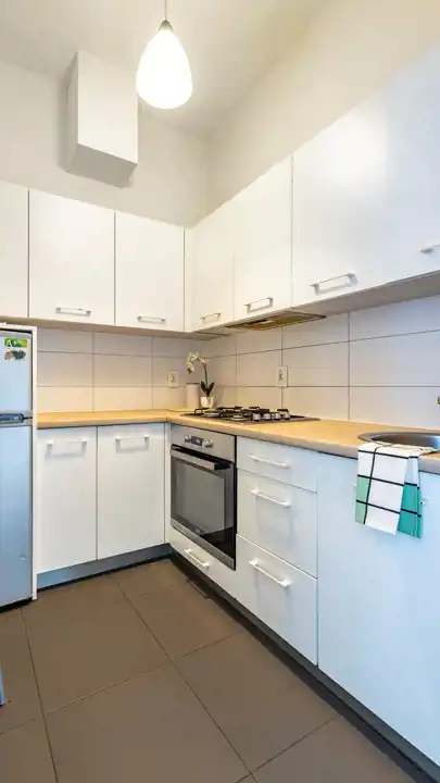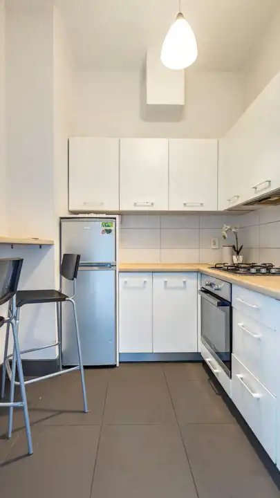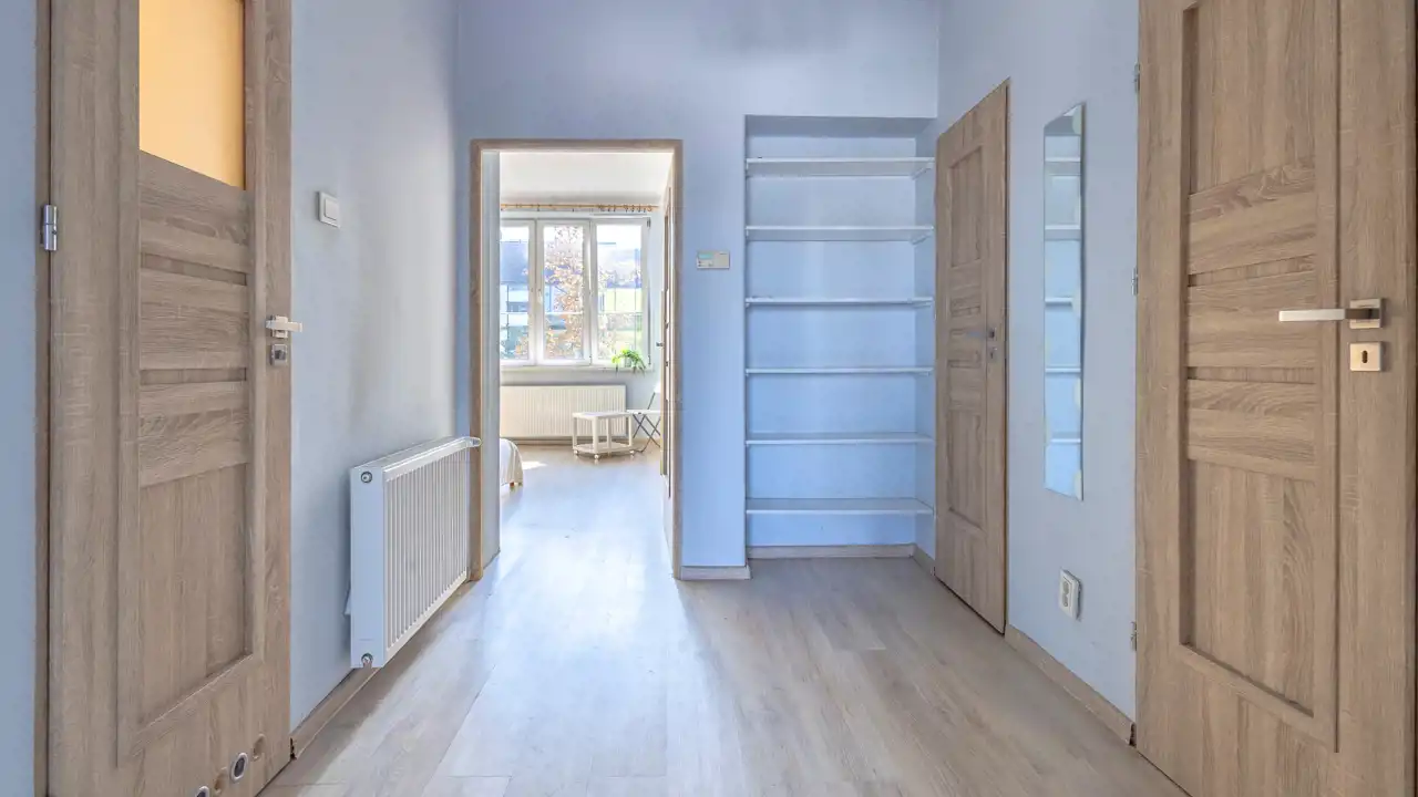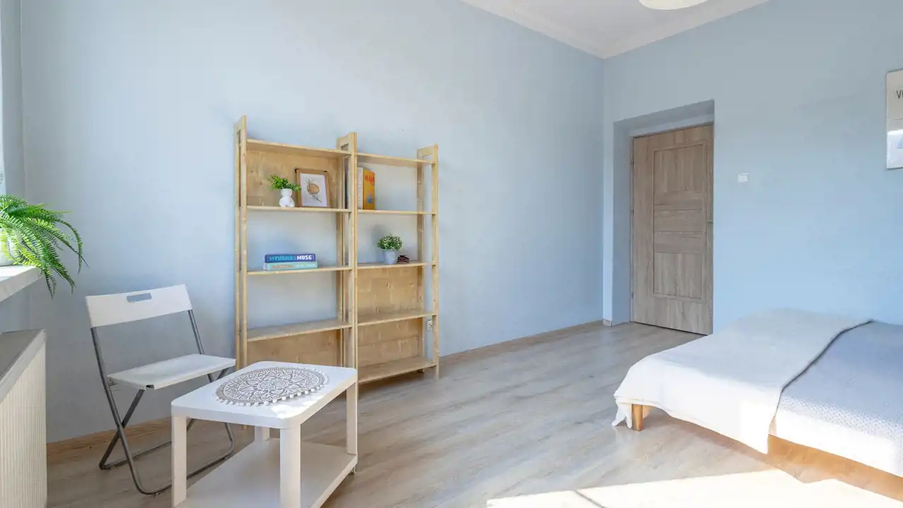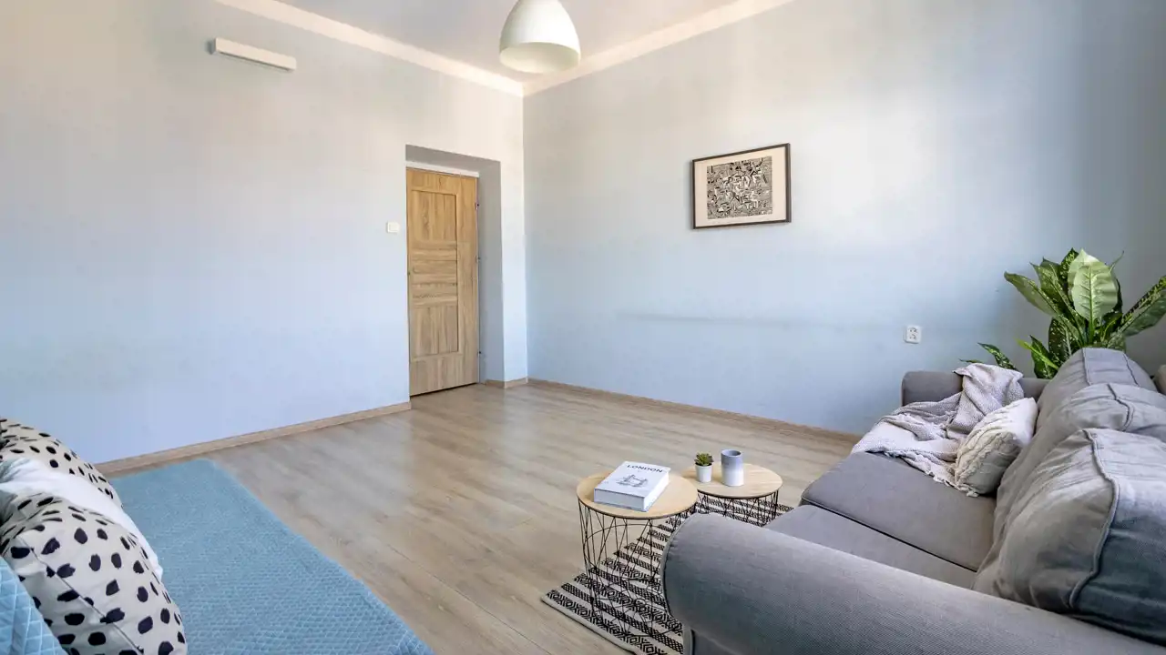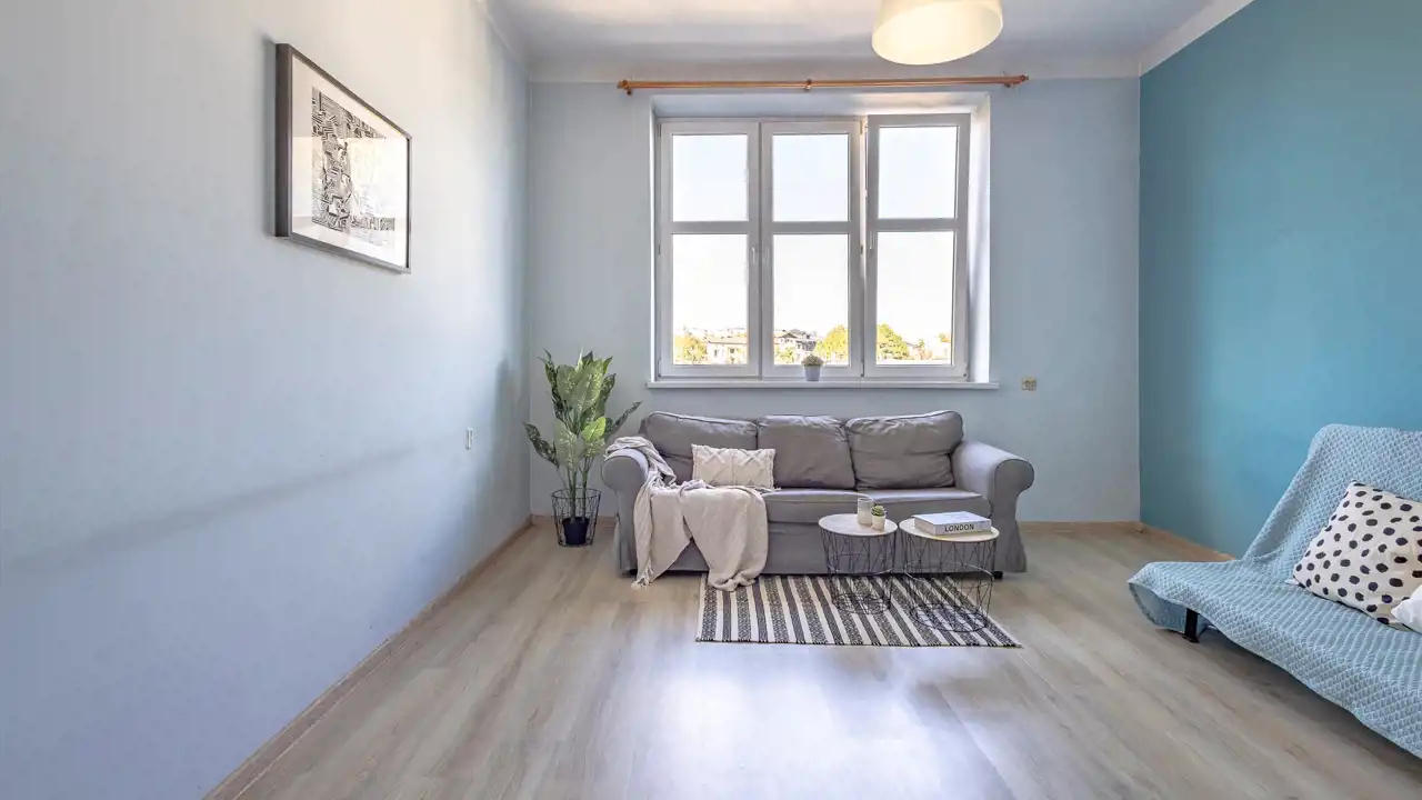 Znajduje się na 4 piętrze w 5 piętrowej kamienicy z 1938 roku. Składa się z kuchni, 2 osobnych pokoi, 2 schowków, łazienki i przedpokoju. Istnieje możliwość doposażenie mieszkania na życzenie najemcy.