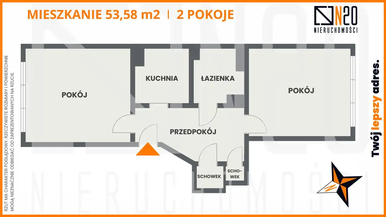 N20 Nieruchomości przedstawia ofertę 2- pokojowego mieszkania o powierzchni 53,58 m2 zlokalizowanego przy ul. Czarnowiejskiej.