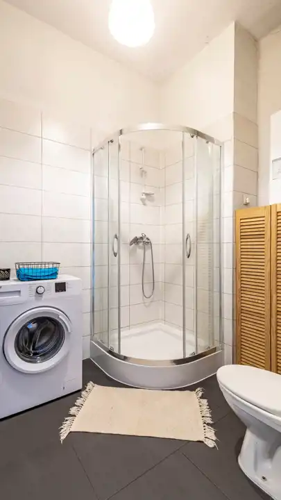 Cena: 2700 zł + 590 zł czynsz administracyjny, który zawiera zaliczkę na wodę i śmieci + prąd i gaz. Ogrzewanie i ciepła woda z nowego piecyka gazowego. Średni koszt gazu to 240 zł miesięcznie.