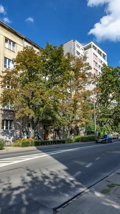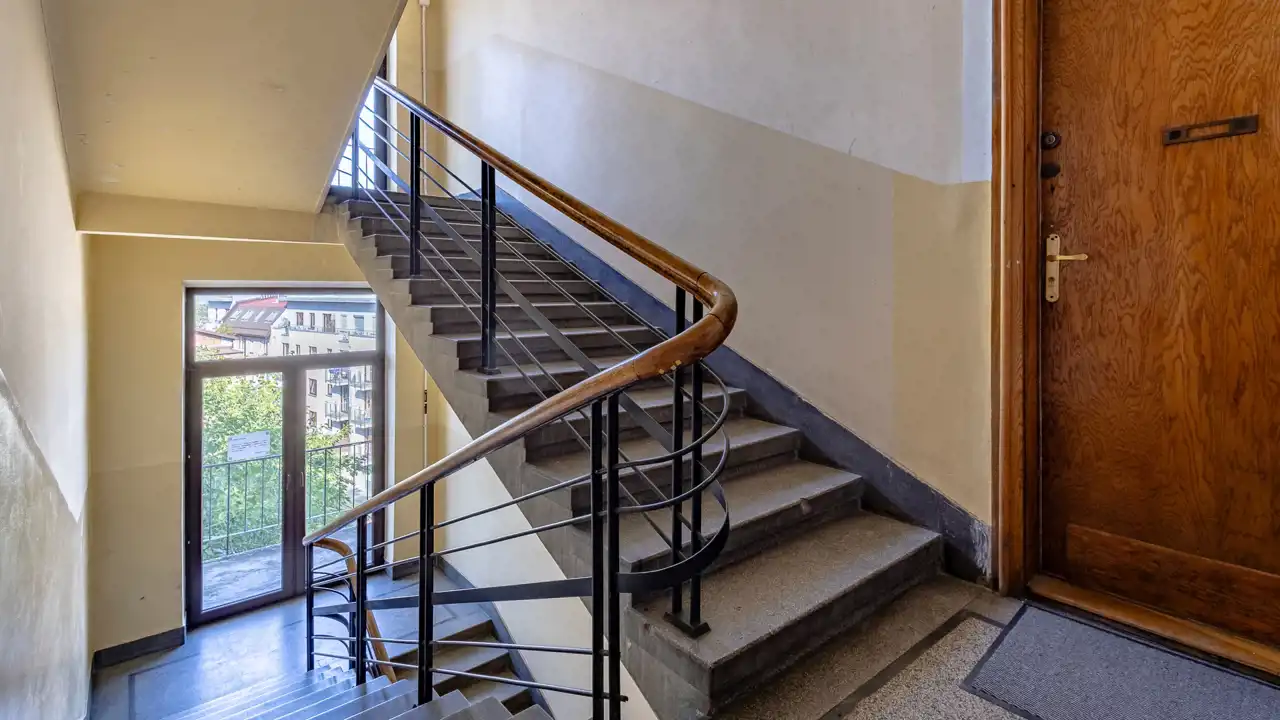 Kamienica w której znajduje się mieszkanie łączy w sobie historyczny urok z solidnym wykonaniem charakterystycznym dla przedwojennego budownictwa. Budynek wyróżnia się klasyczną fasadą, która nawiązuje do architektury tamtego okresu, nadając całemu miejscu niepowtarzalny urok. Elewacja frontowa jest odnowiona i utrzymana w stonowanej kolorystyce. Klatka schodowa jest zadbana i estetyczna.