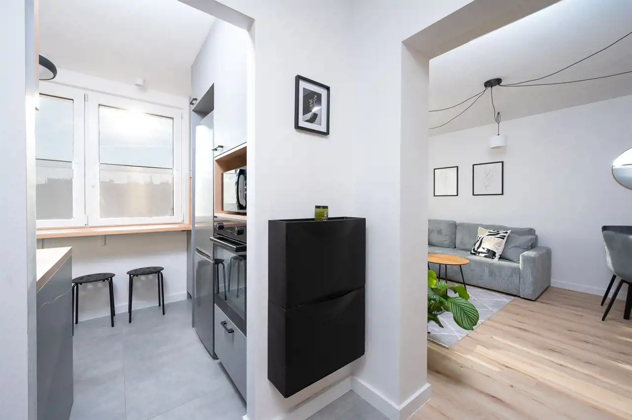 Mieszkanie zostało fajnie zaprojektowane, jest dużo miejsca do przechowywania, sporo miejsca do wypoczynku, kuchnia jest funkcjonalna.