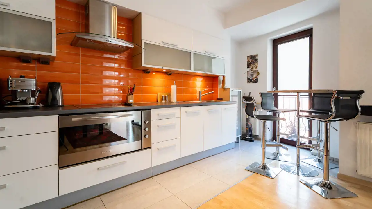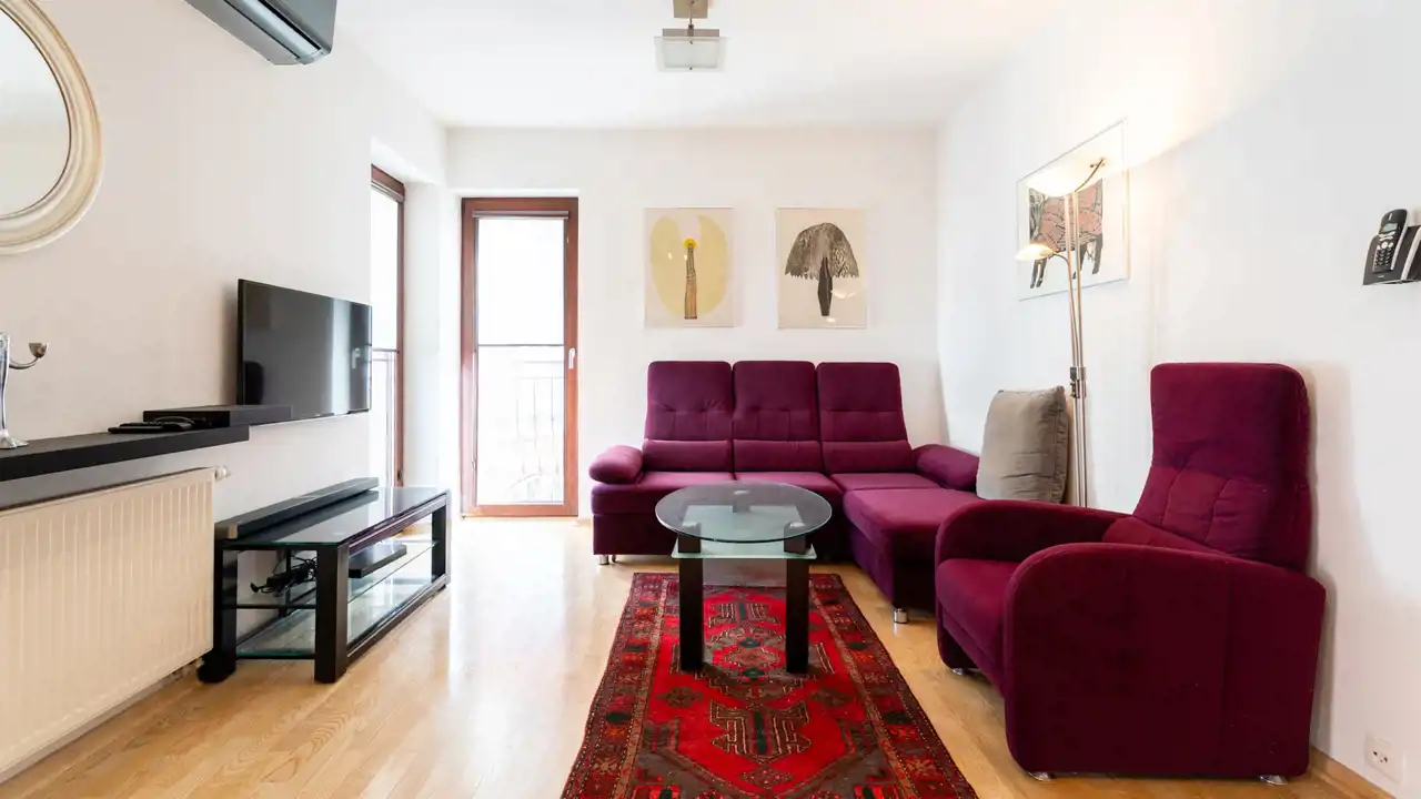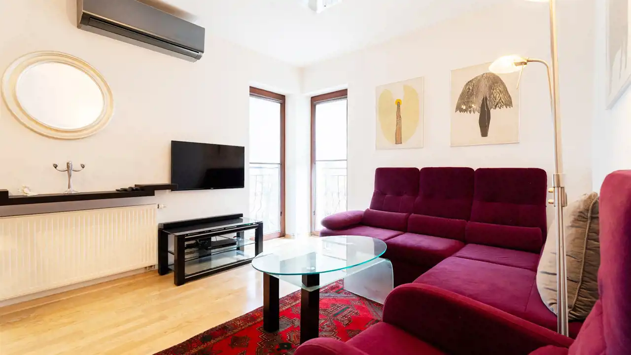 Aneks kuchenny został wyposażony w: zmywarkę, lodówkę, płytę grzewczą, piekarnik, mikrofalę, okap oraz mały ekspres do kawy. W salonie znajduje się wygodny narożnik, fotel, telewizor oraz klimatyzacja. Mieszkanie wykończone w dobrym standardzie, gotowe do zamieszkania.
