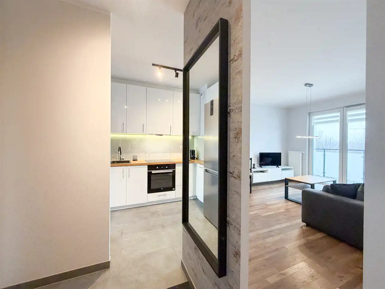Mieszkanie jest umeblowane jak na zdjęciach i gotowe do zamieszkania.