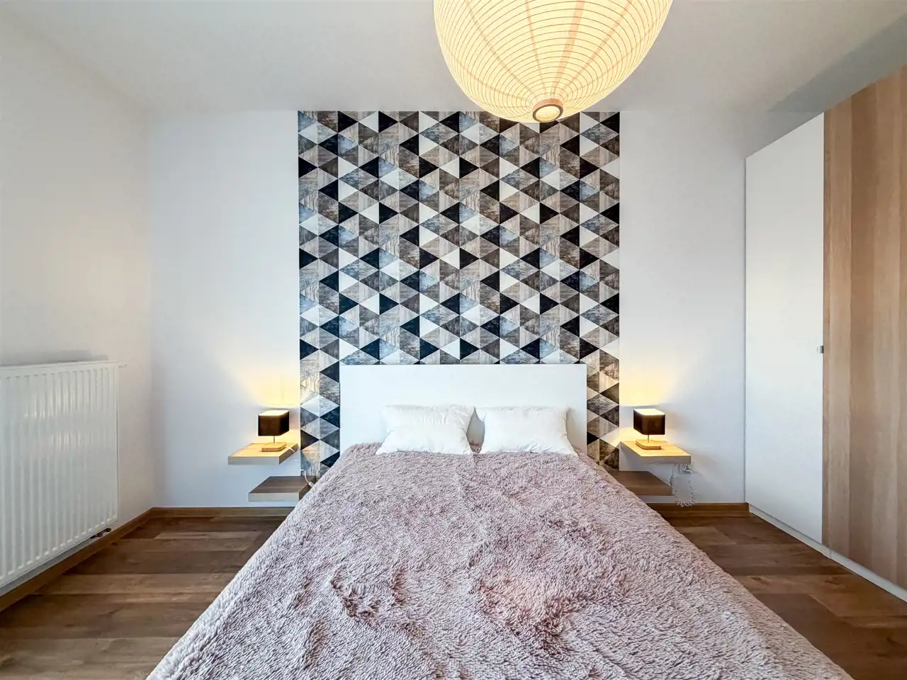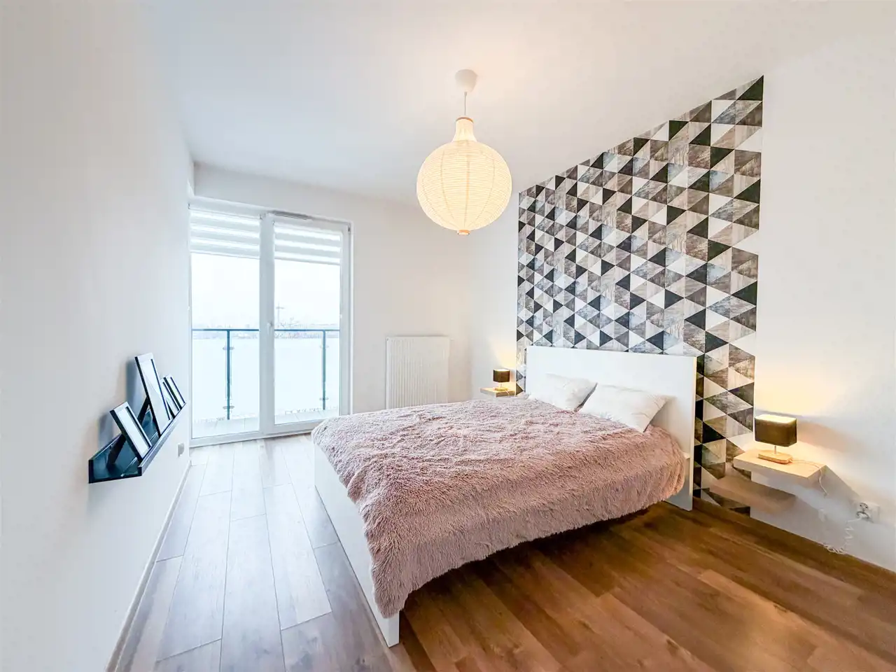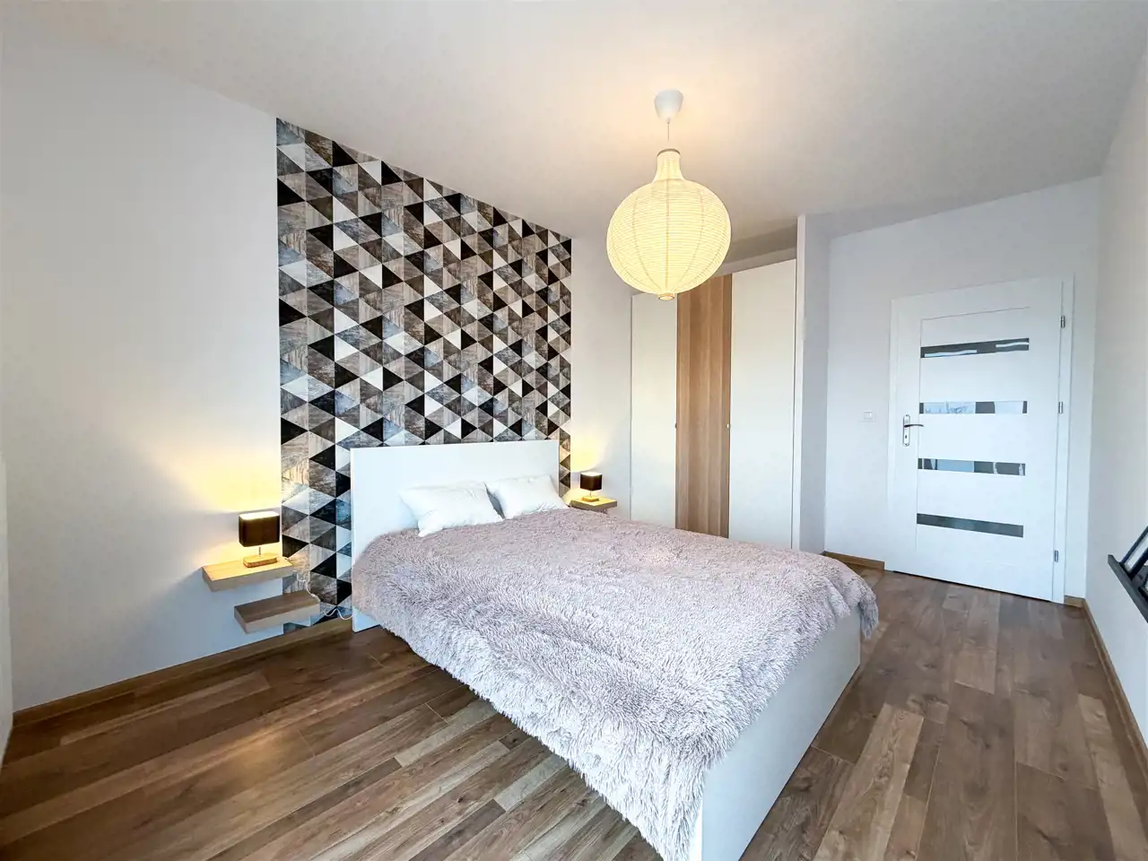- Sypialnia: z dużym łóżkiem (160x200) i głęboką szafą;