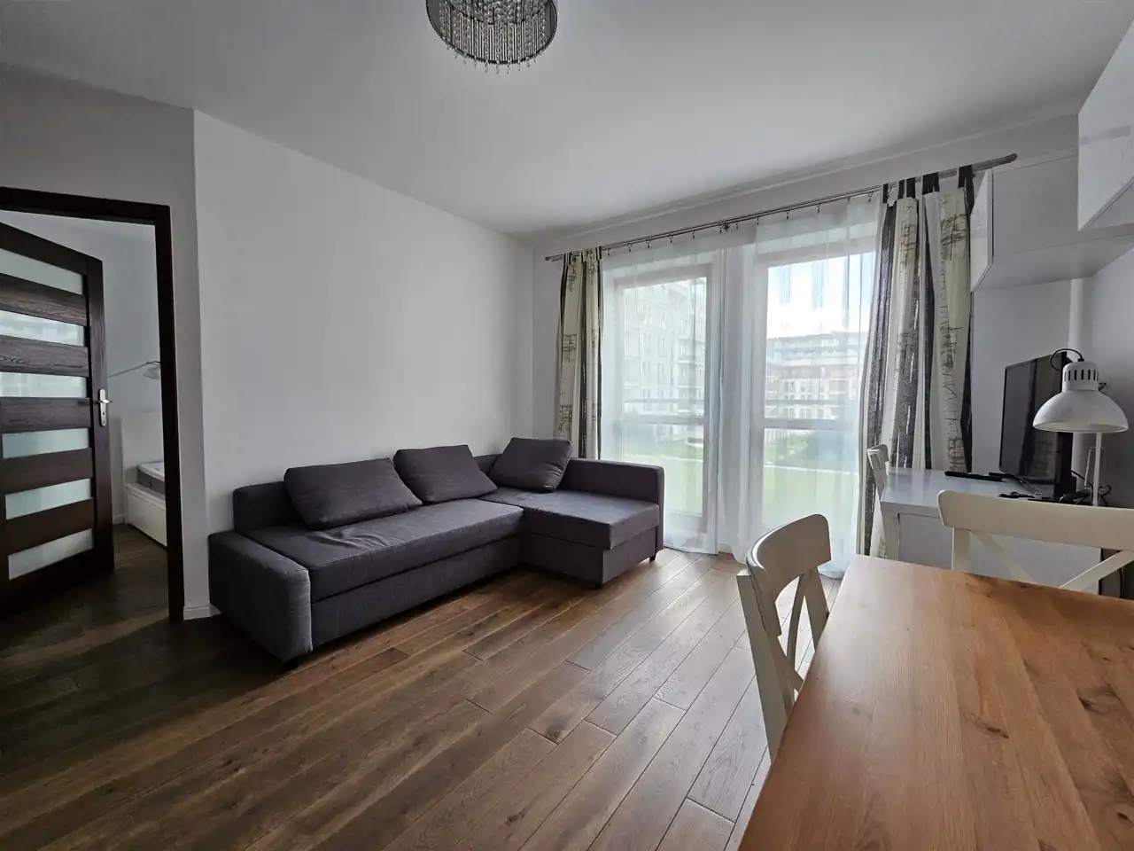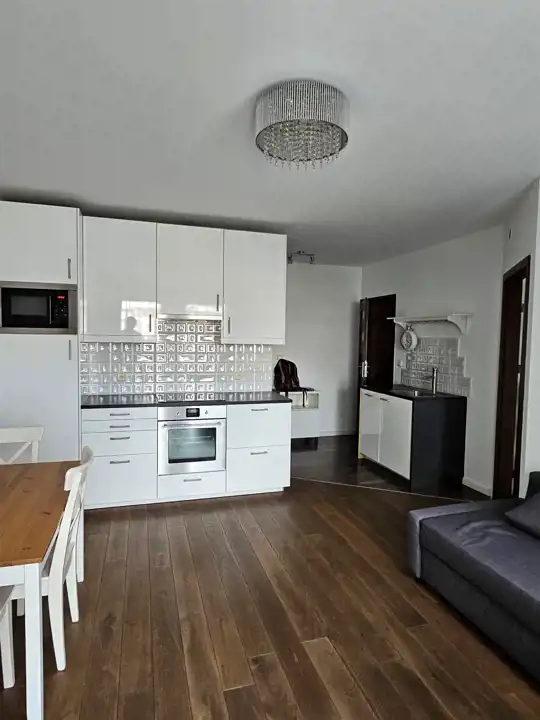 Mieszkanie jest wyposażone AGD (pralka, lodówka, zmywarka) w sypialni podwójne łóżko i duża szafa. Salon wyposażony jak na zdjęciach.