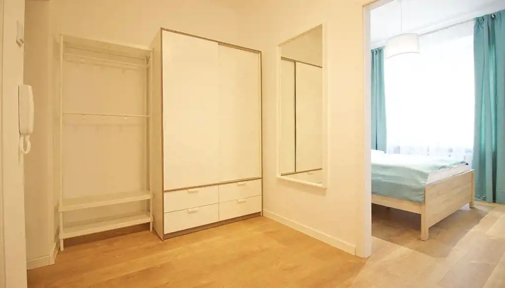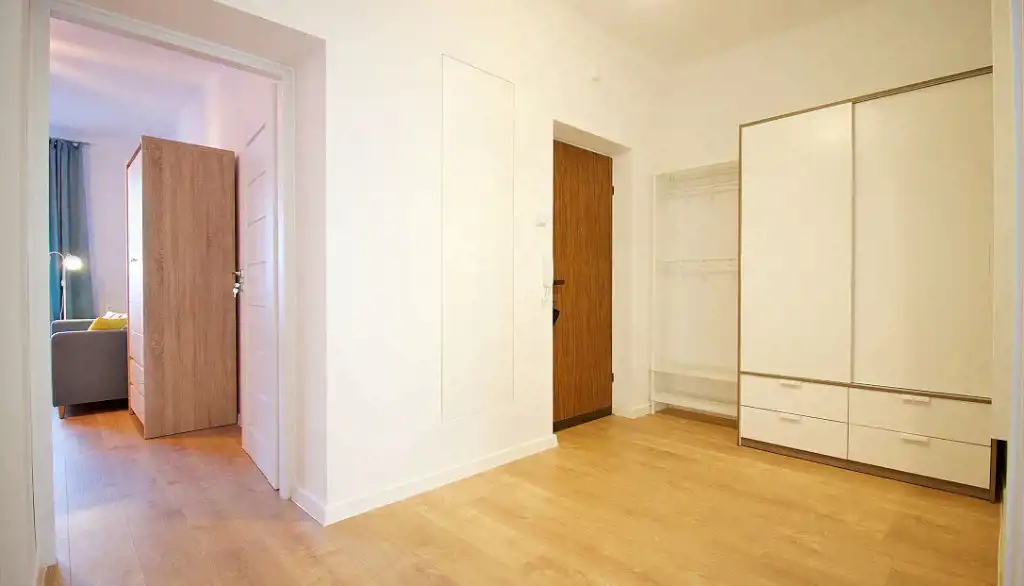 Na powierzchnię 47,5 m2 składają się: 2 oddzielne pokoje, duży przedpokój z szafą, osobna, jasna kuchnia, łazienka z WC.