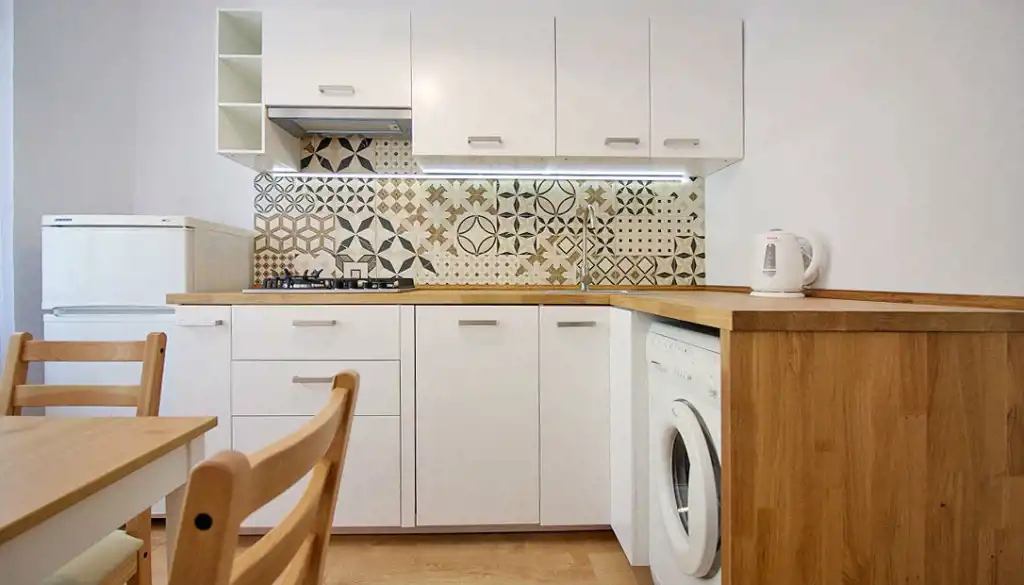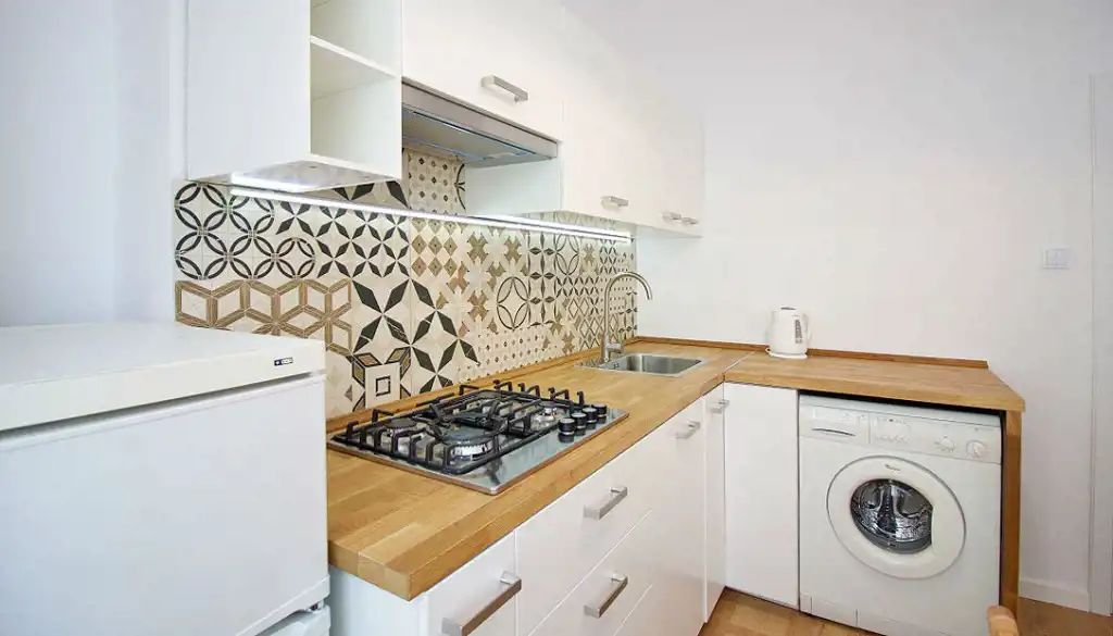 Kuchnia w pełni wyposażona, zmywarka, płyta indukcyjna.