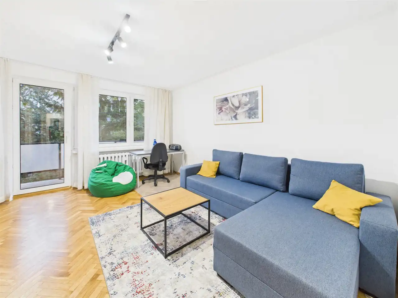 - pokój dzienny z rozkładaną sofą i wyjściem na balkon