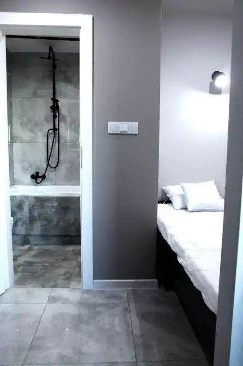 Klementyny Hoffmanowej Street. The apartment is located parallel to one of Krakow's main arteries, which leads to Zakopane and the city bypass. Access to the entire transportation hub is available – buses and trams (the stop is right next to the building), as well as trains – Kraków Łagiewniki Railway Station is just a few minutes' walk away! Nearby are the Zakopianka shopping center, Żabka stores, Lidl, pharmacies, parks, a bike path to the market square, and more.