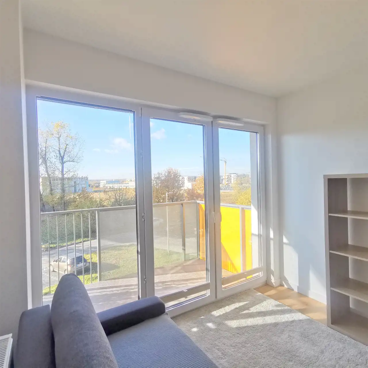 Do wynajęcia przytulne 2 pokojowe mieszkanie o pow. 38,80m2 położone na 2 piętrze 7 piętrowego bloku z 2023r