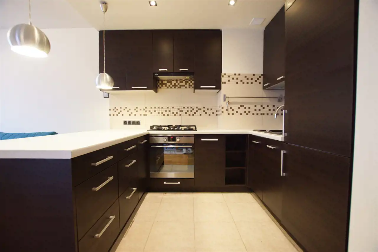 - w kuchni meble na miarę, dużo miejsca do przechowywania, z płytą gazową, okapem w zabudowie, dużą lodówko-zamrażarką, nie ma zmywarki