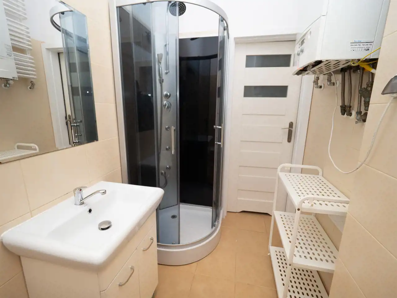 - Media Ogrzewanie: gazowe; Woda: piec gazowy dwufunkcyjny