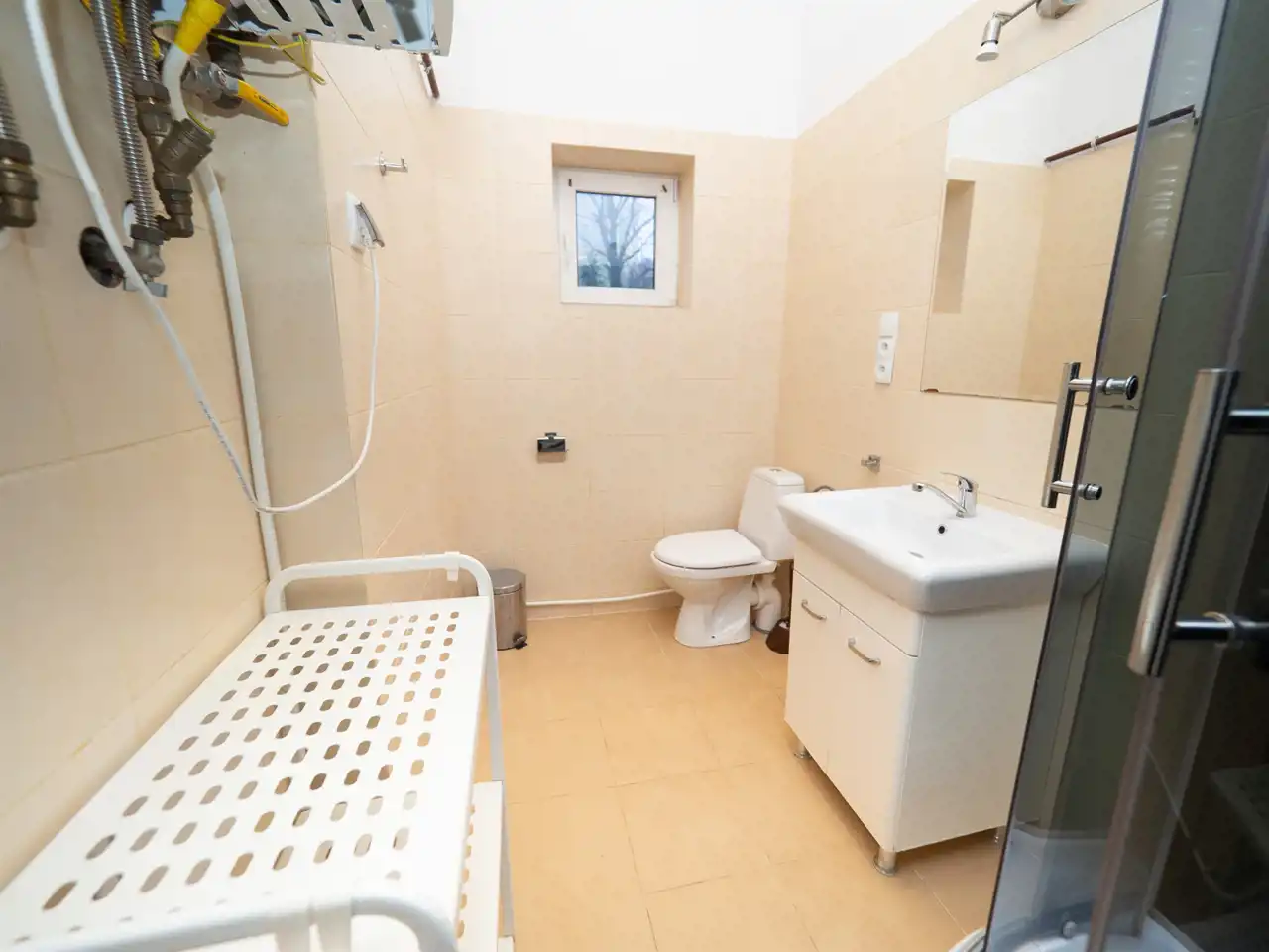 Heating and hot water provided by a dual-function gas boiler.