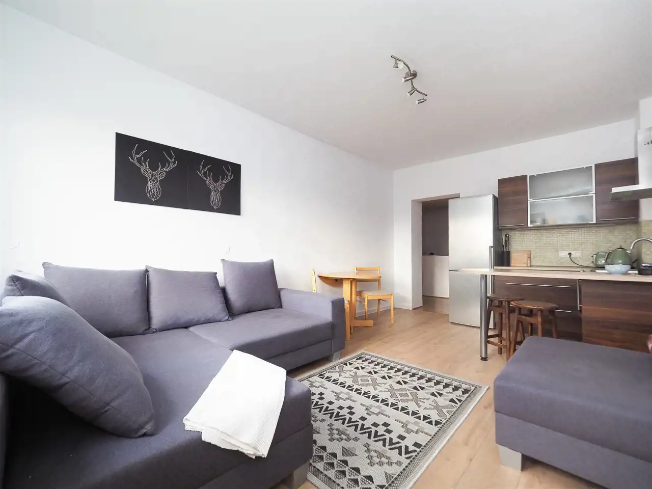 The apartment has an area of 40 m² and has been arranged in a functional way. The interiors are bright and fully equipped.