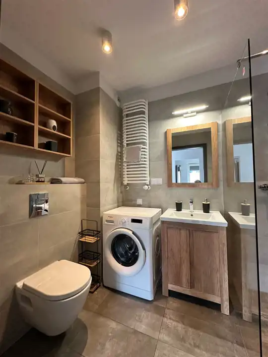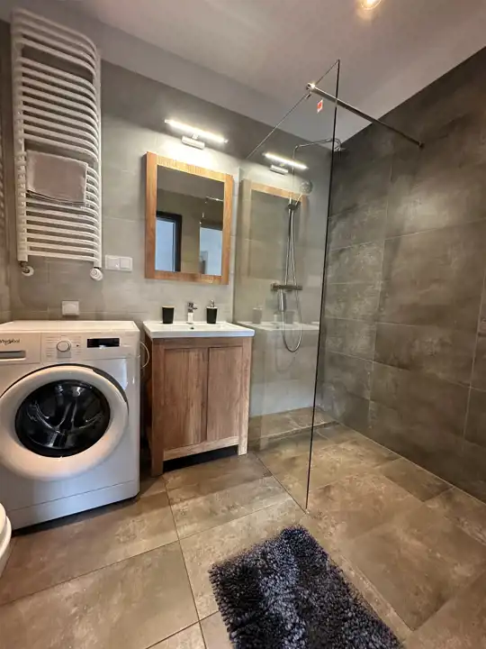 3. Łazienka ok. 4,5 m2 [zabudowa prysznicowa, umywalka z szafką, WC typu geberit, pralka]