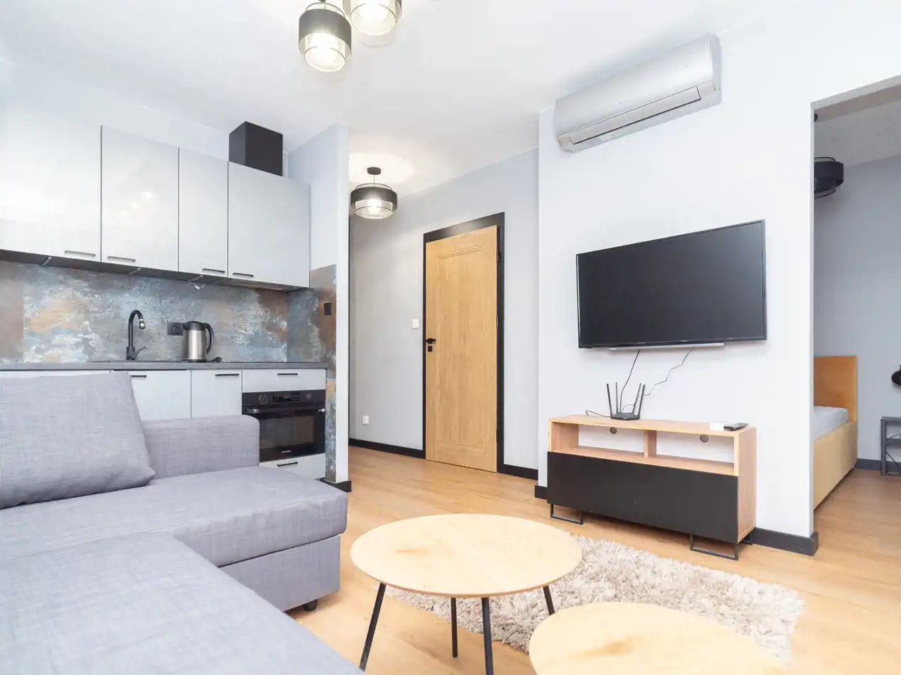 - salonu z aneksem kuchennym,