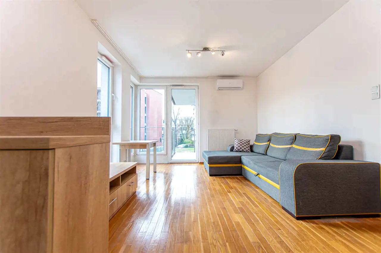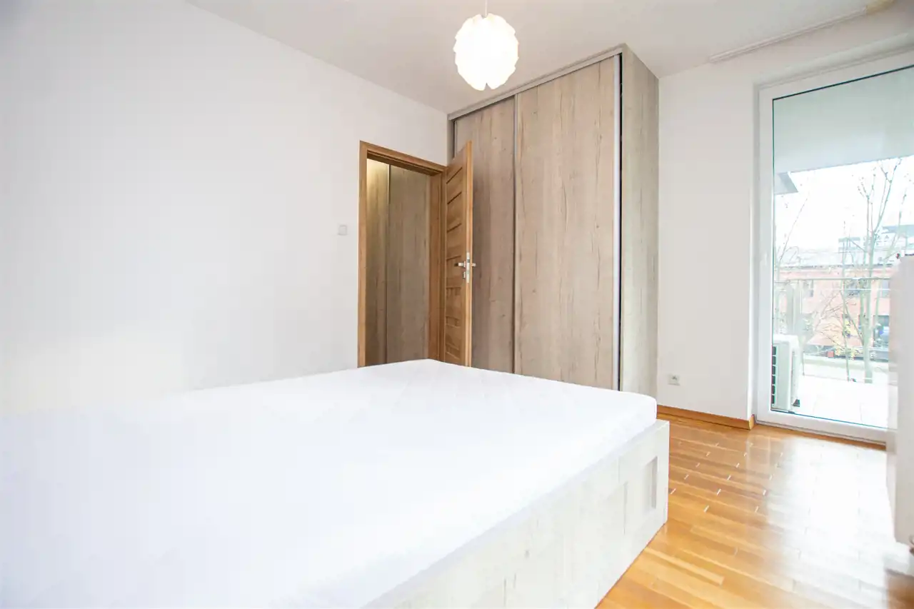 FUNKCJONALNE I JASNE 2-POKOJOWE MIESZKANIE Z NAROŻNYM BALKONEM I WIDOKIEM NA WISŁĘ, UL. ZABŁOCIE W INVESTYCJI RIVERSIDE, DZIELNICA PODGÓRZE.