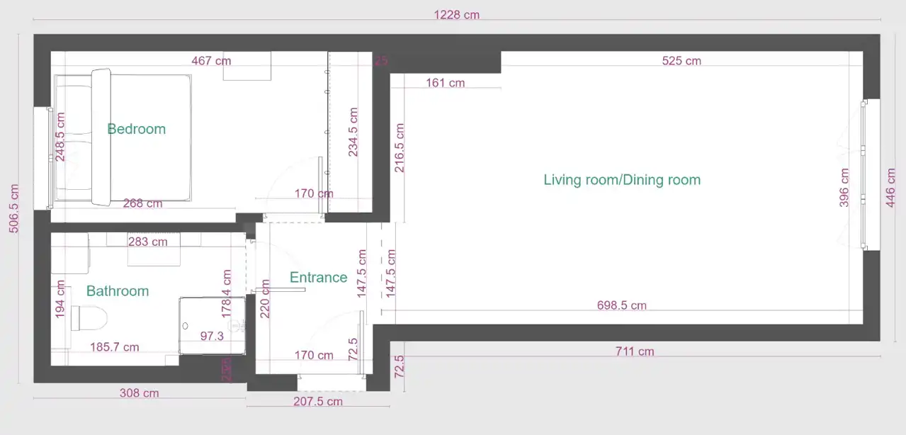 - Charakterystyka mieszkania 47 m2, 2 pokoje