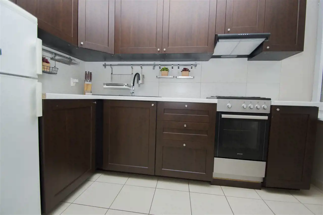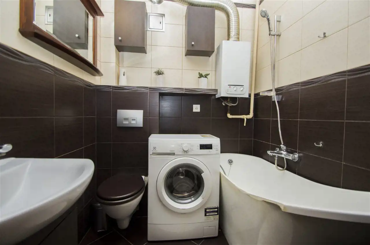 W wyposażeniu kuchennym jest lodówka, zamrażarka, okap, płyta, oraz stół z krzesłami. Łazienka wyposażona jest wannę, wc, pralkę oraz lustro. W sypialni jest sofa z opcją rozłożenia, szafa oraz półka. druga sypialnia wyposażona jest w sofę rozkładane, szafkę oraz telewizor. Mieszkanie jest umeblowane, gotowe do zamieszkania
