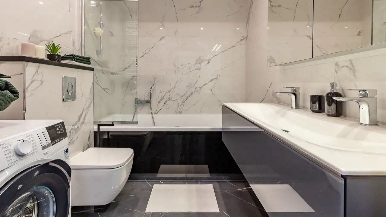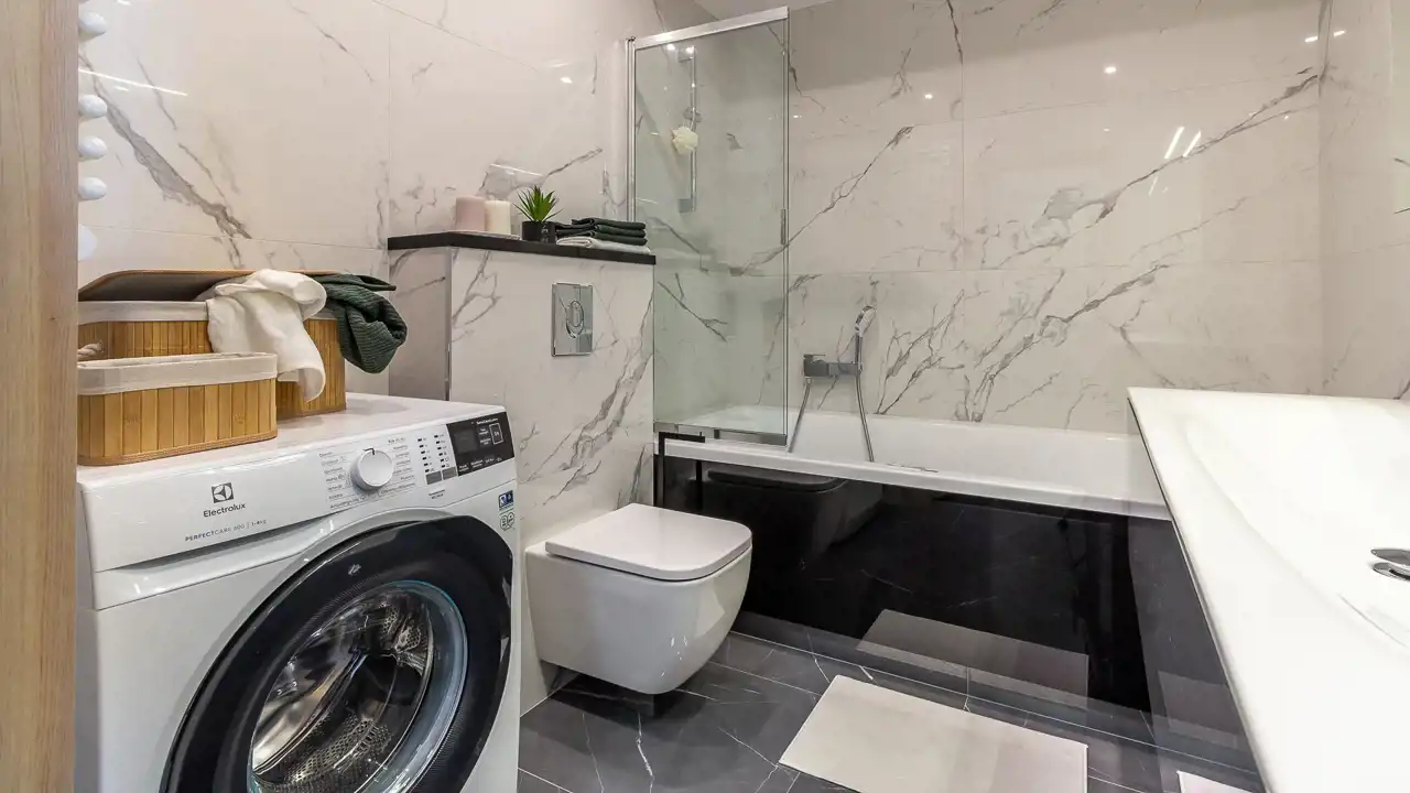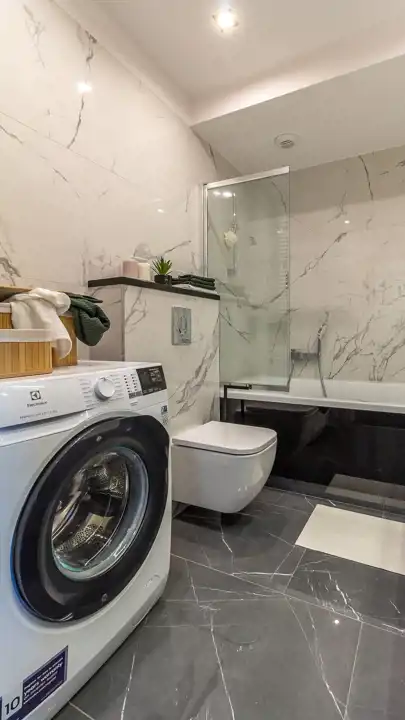 Komfortowa, pięknie wykończona łazienka z dużą wanną (z opcją prysznica), wc, dużą umywalką oraz toaletą. W łazience sporo miejsca na przechowywanie kosmetyków.