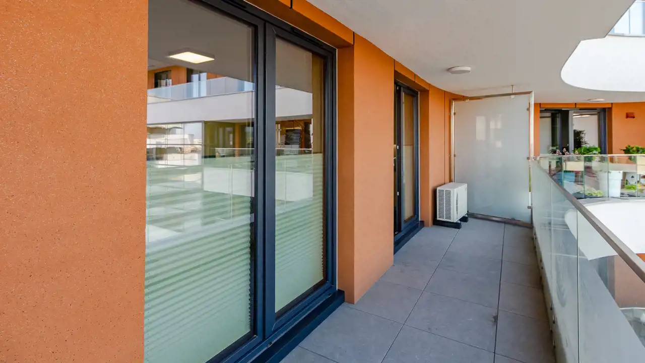 Mieszkanie z racji położenia posiada widok z tarasu na osiedle oraz na okolicę. W celu podniesienia standardu oraz komfortu lokatora w mieszkaniu zainstalowana została klimatyzacja.