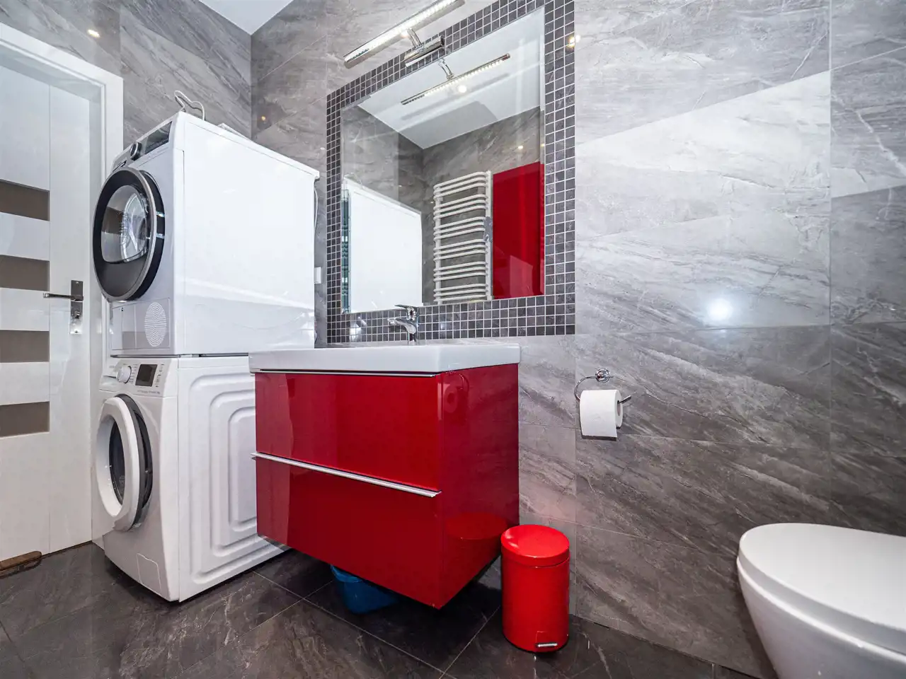 Łazienka (5,51 m2) z prysznicem, pralką i suszarką (suszarka zakupiona w październiku br.)