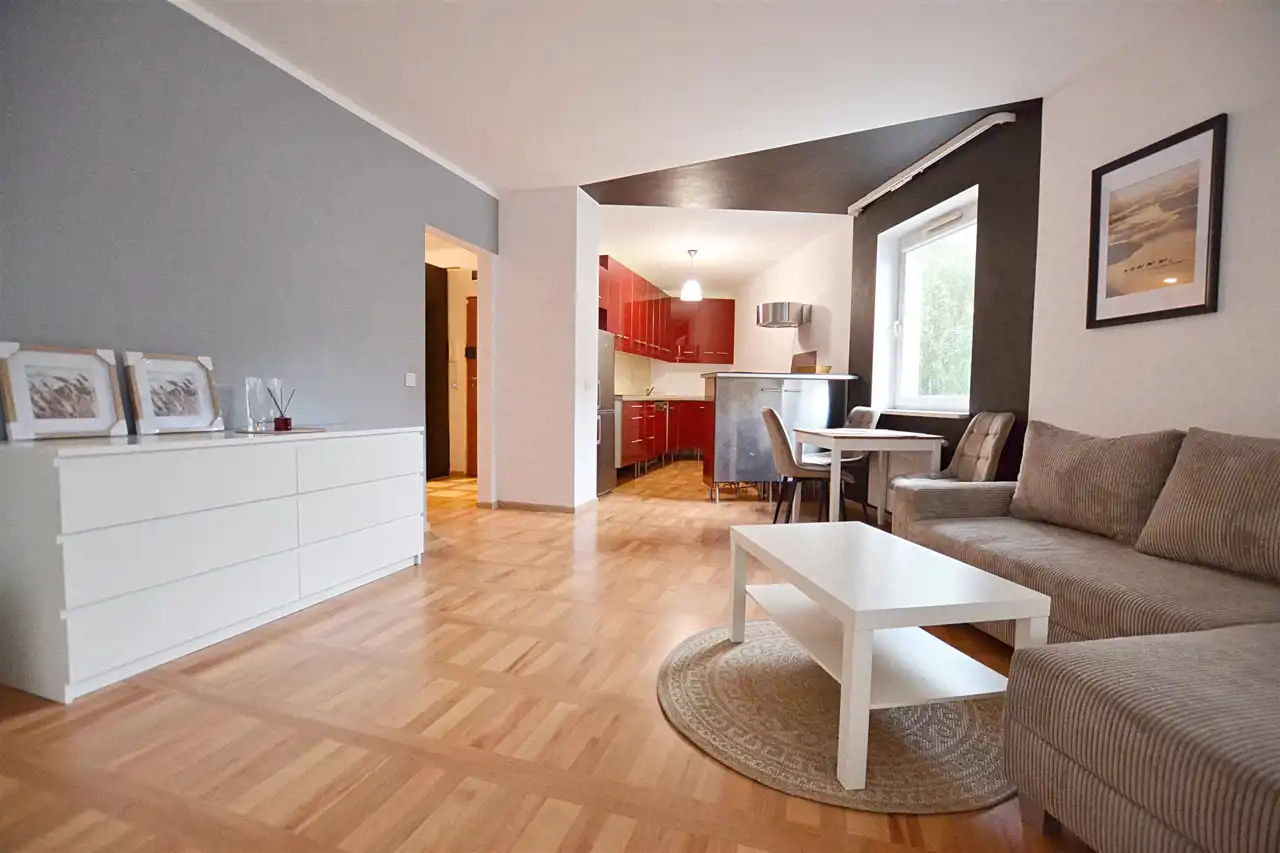 - mieszkanie składa się z dużego salonu otwartego na wygodną i funkcjonalną kuchnię, dwóch niezależnych sypialni, łazienki i przedpokoju;