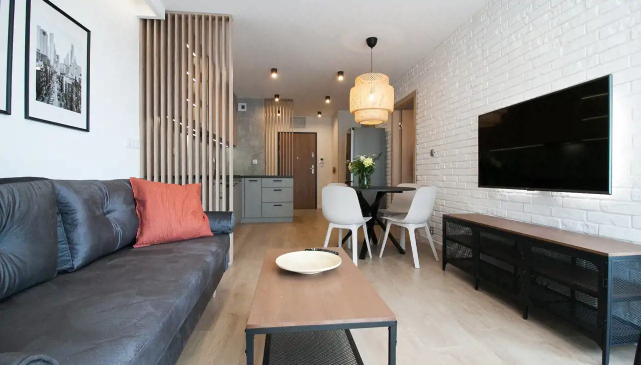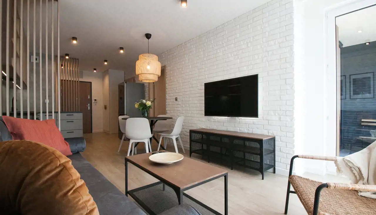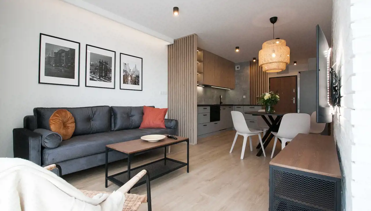 Kompletnie umeblowane i wyposażone w sprzęty wysokiej jakości, projektowane oświetlenie, meble na wymiar.