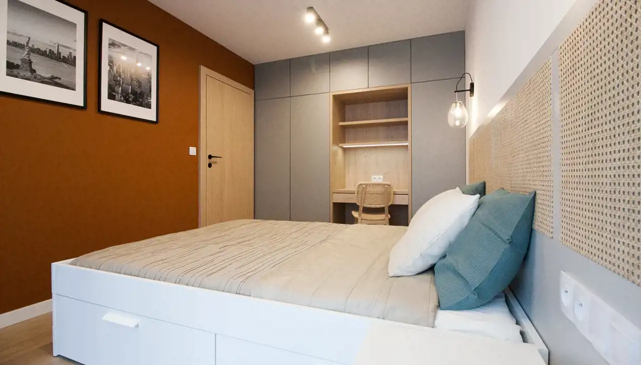 - przedpokoju z przestronną zabudowaną szafą.