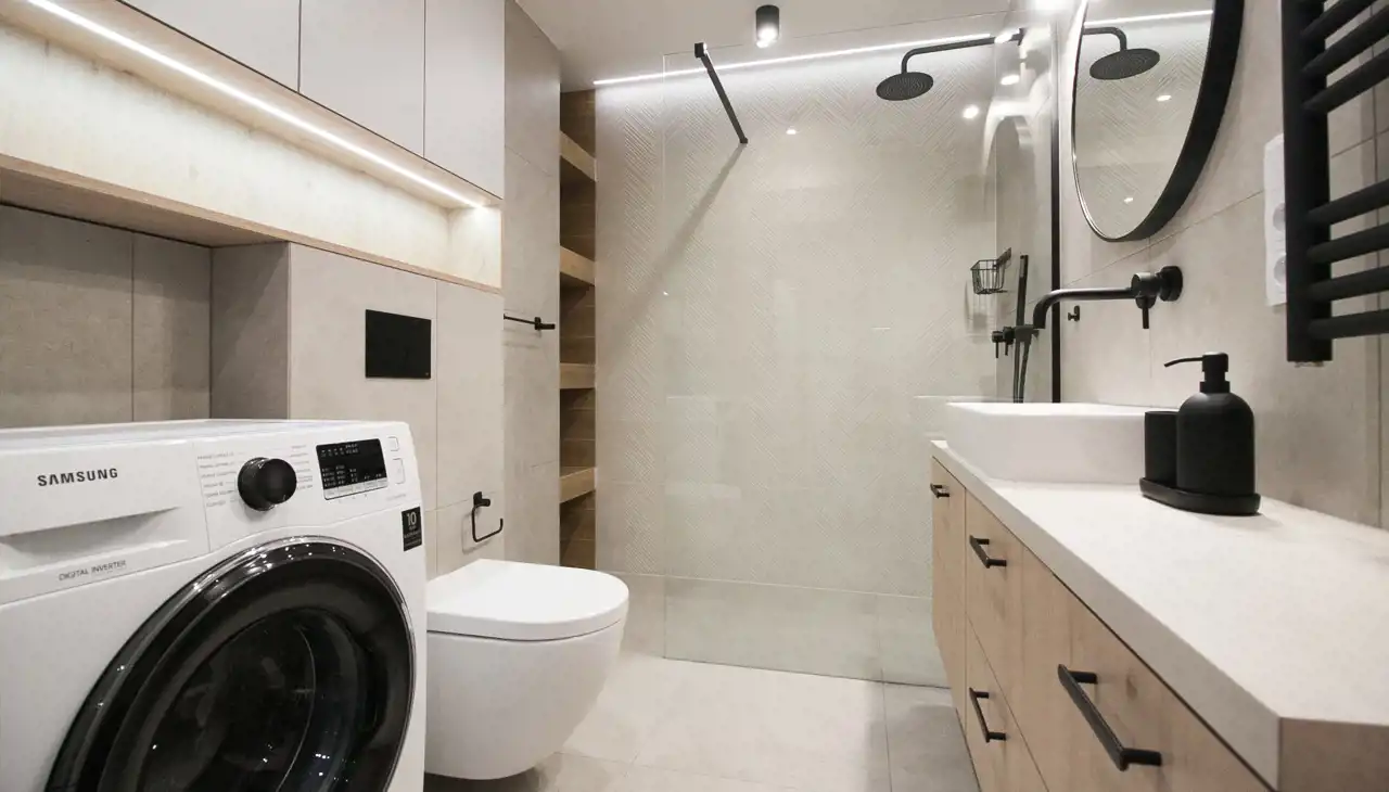 - łazienki z prysznicem, umywalką, toaletą (pralka);