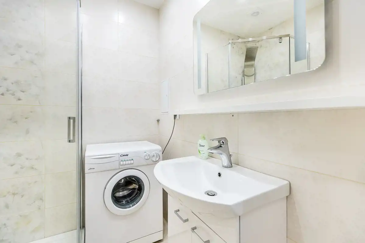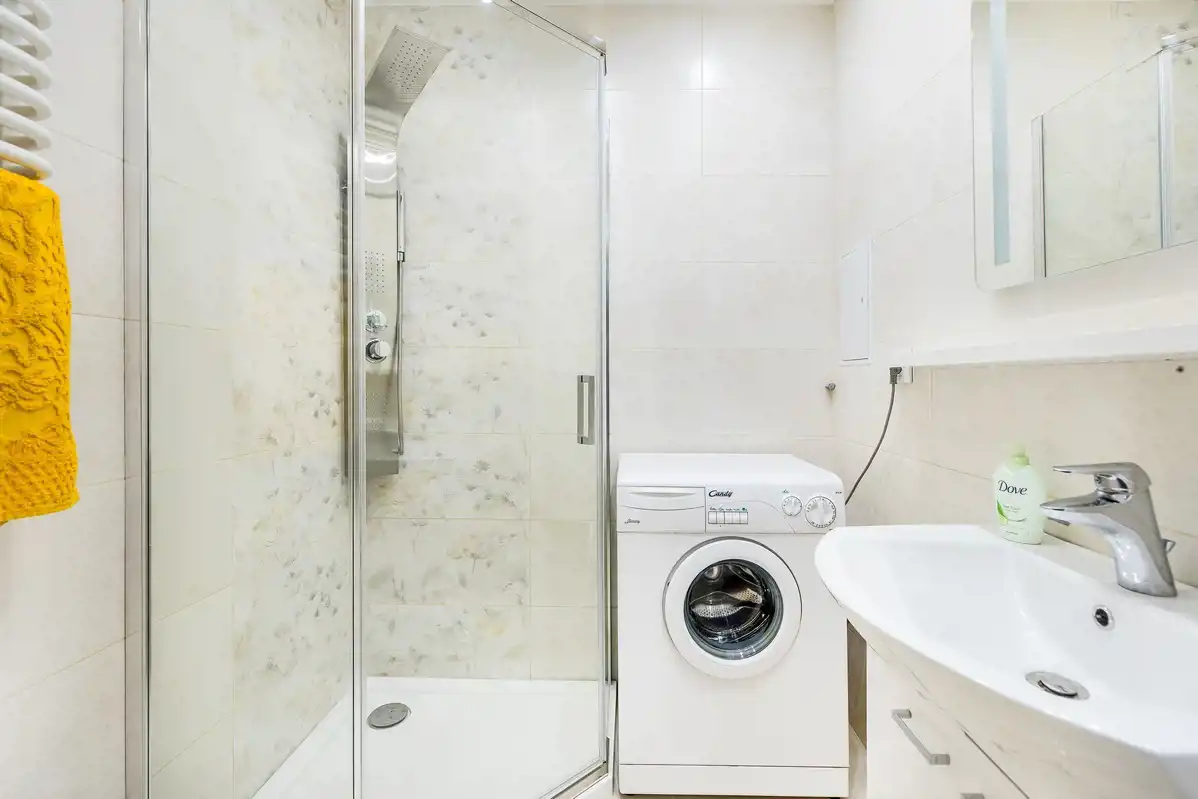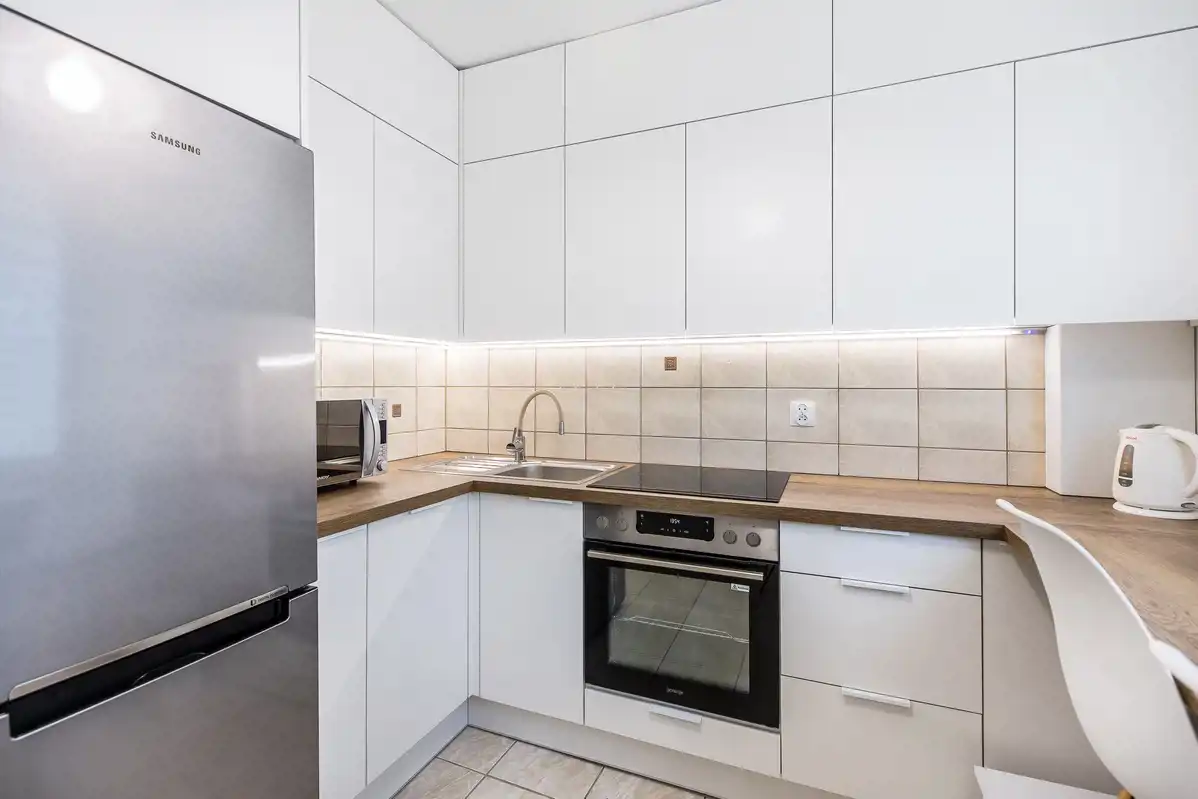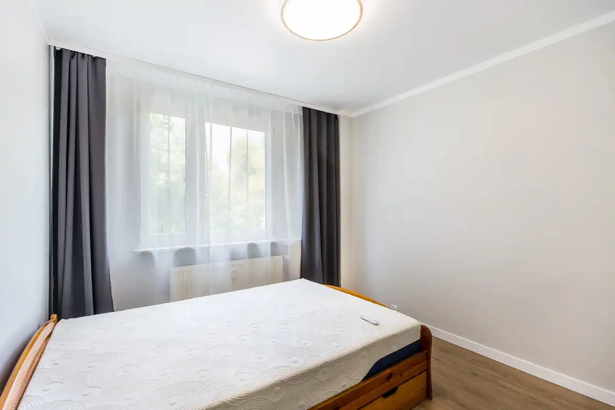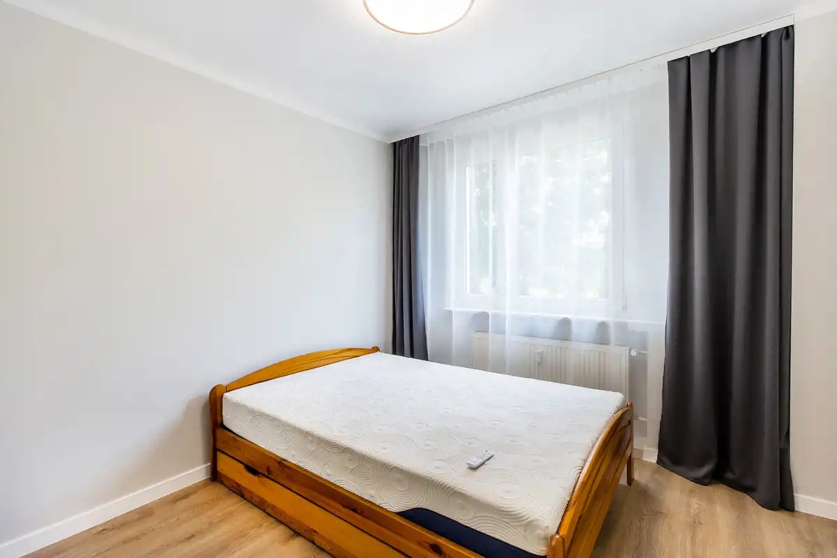 Powierzchnia użytkowa 50 m2, na którą składają się z 2 oddzielne pokoje, oddzielna, jasna kuchnia, łazienka (prysznic, pralka), osobne WC i przedpokój z ogromną zabudowaną szafą.