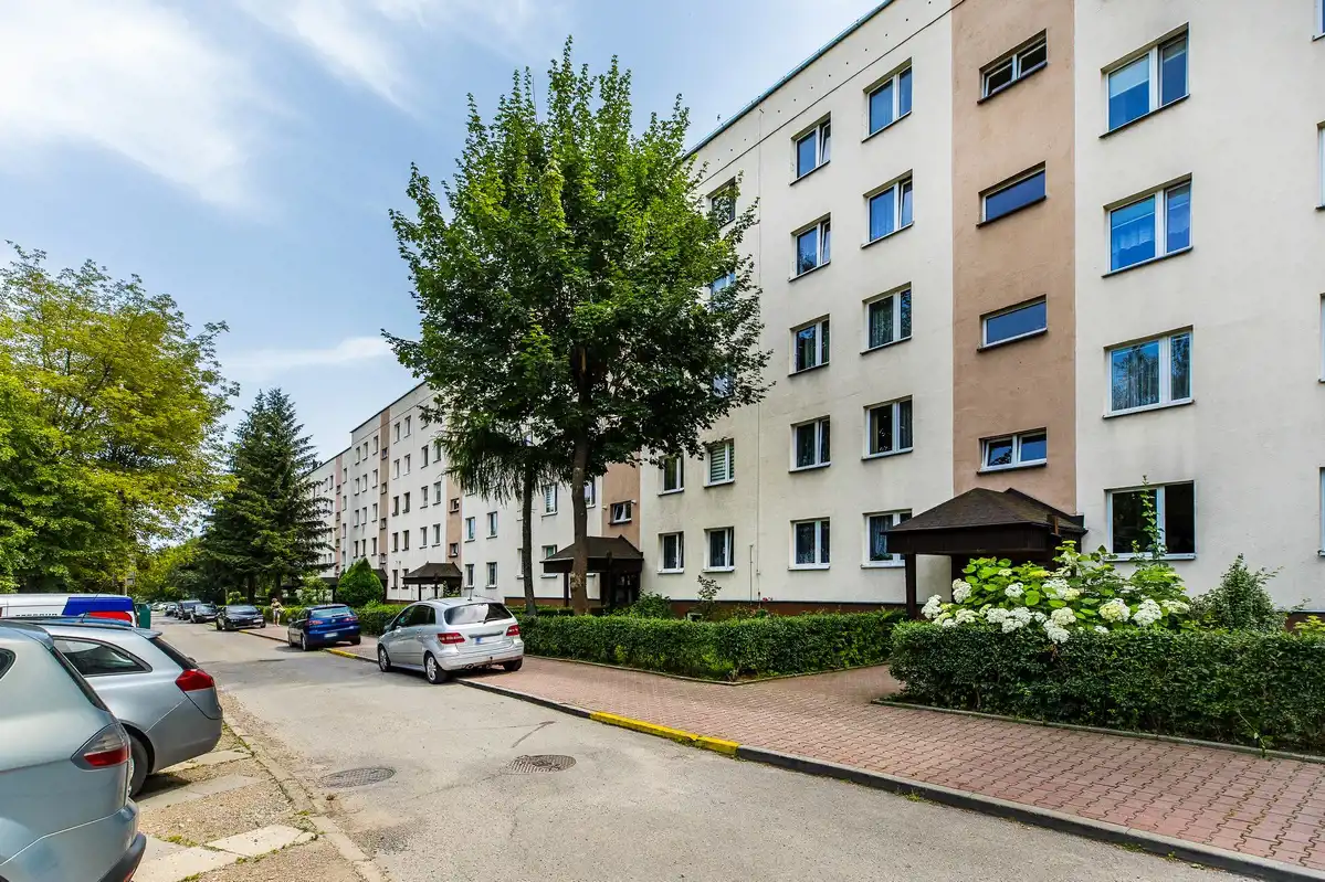 Osiedle z dużą ilością zieleni, parków i drzew.