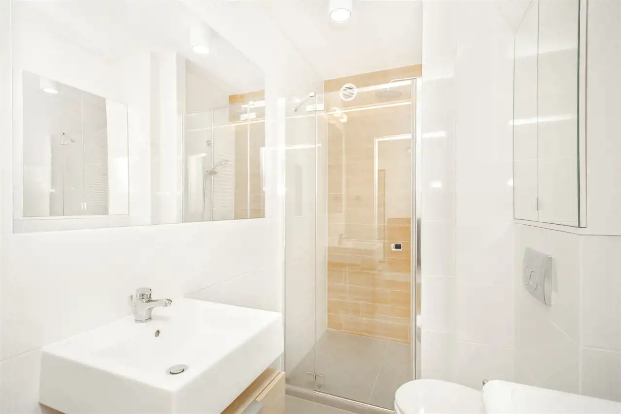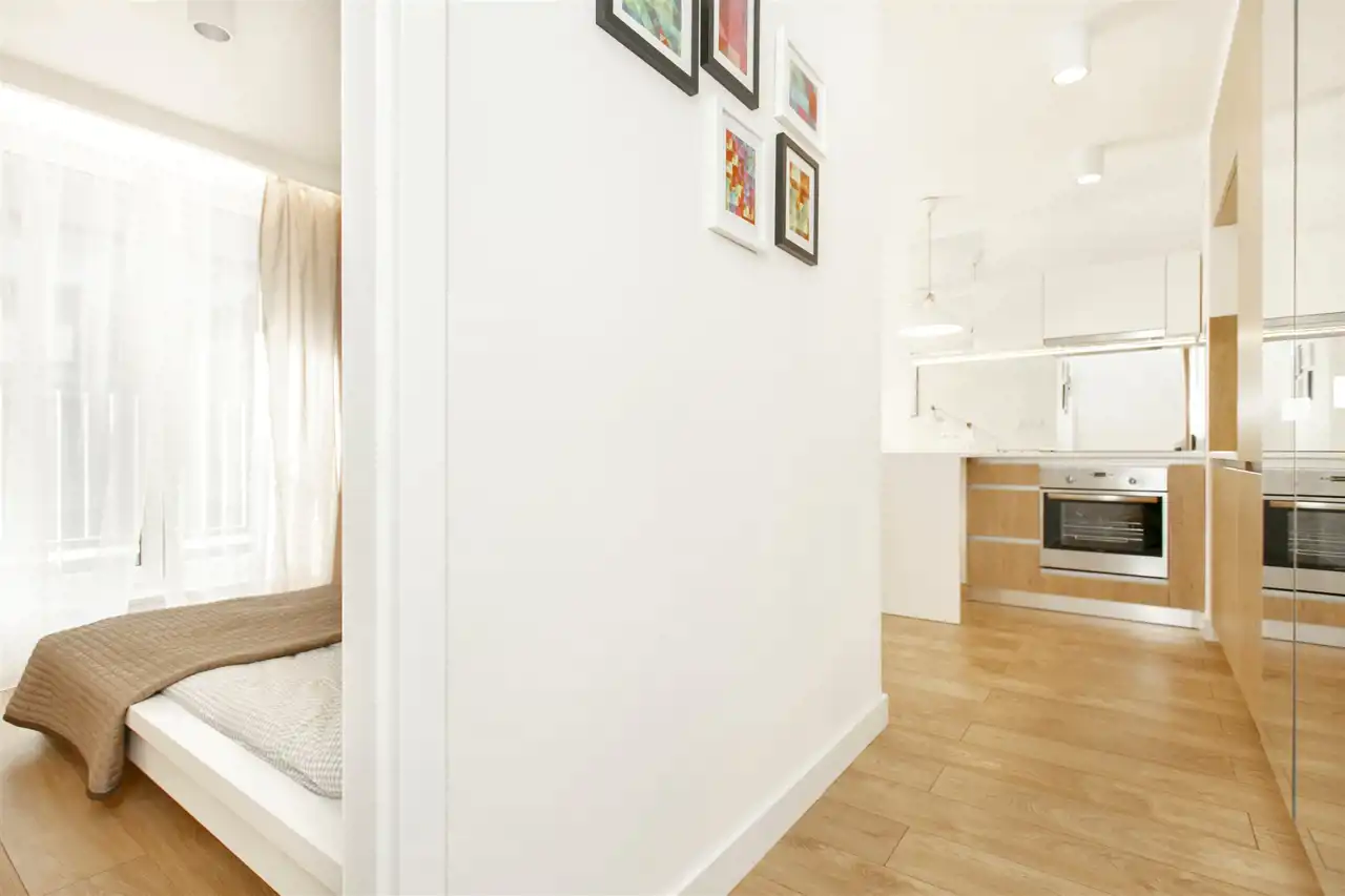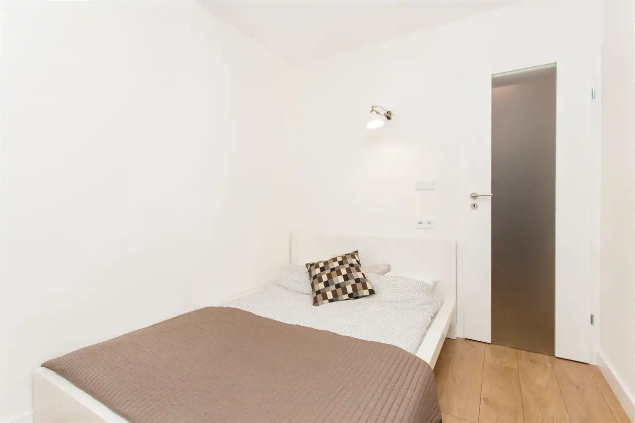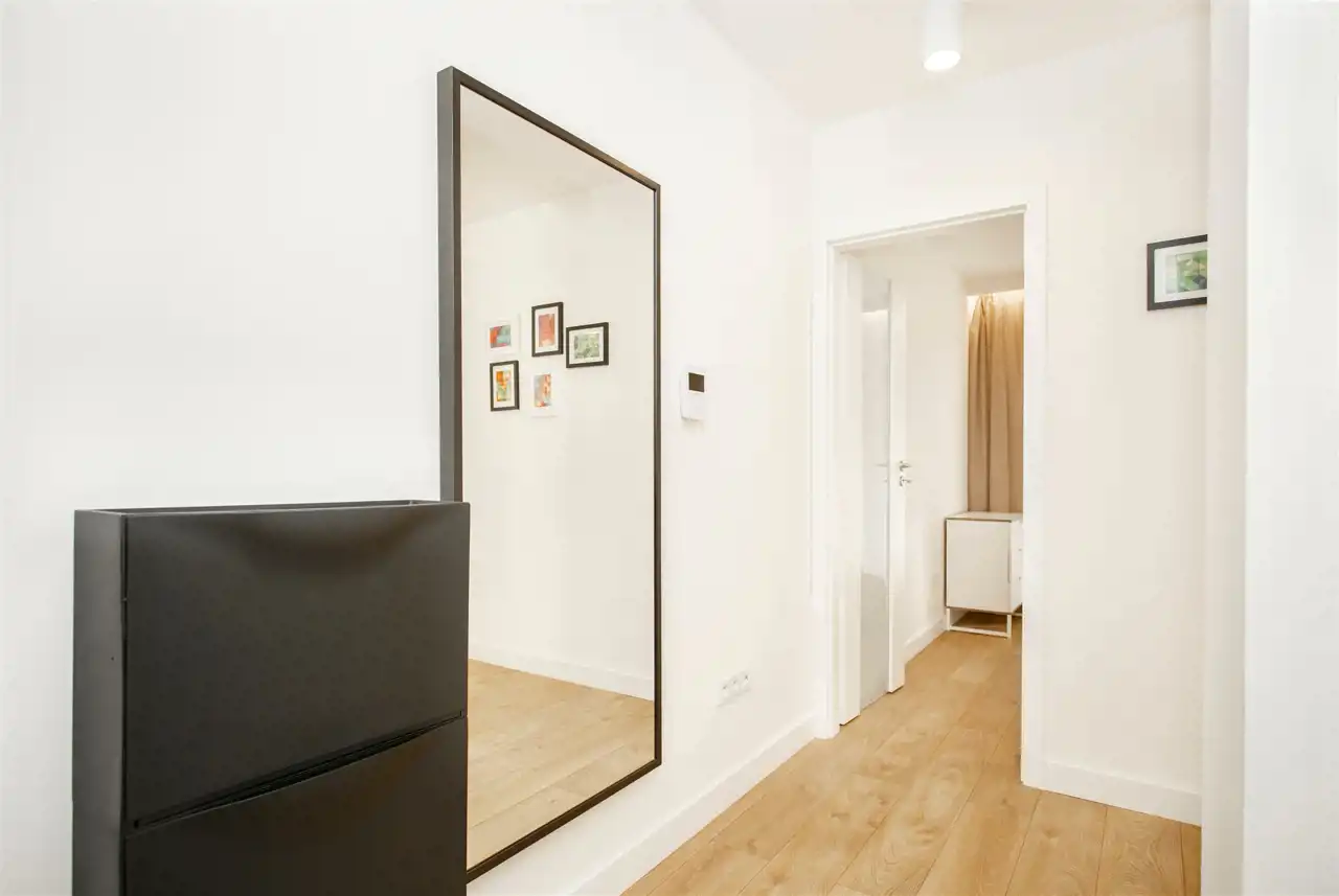 - łazienka z prysznicem,- przedpokój z dużą szafą w zabudowie.