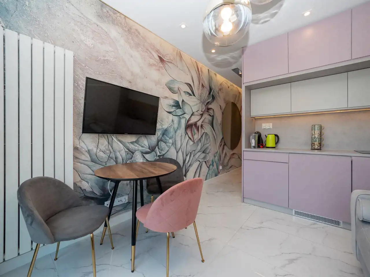 Mieszkanie liczy 29m2. Dzięki przemyślanemu zaprojektowaniu wnętrza, nieruchomość ma wydzieloną strefę nocną z podwójnym łóżkiem. Oprócz tego salon z aneksem kuchennym, łazienka oraz przedpokój. Wykończenie w bardzo wysokim standardzie, z dbałością o najmniejsze detale. Apartament wyposażony w klimatyzację.