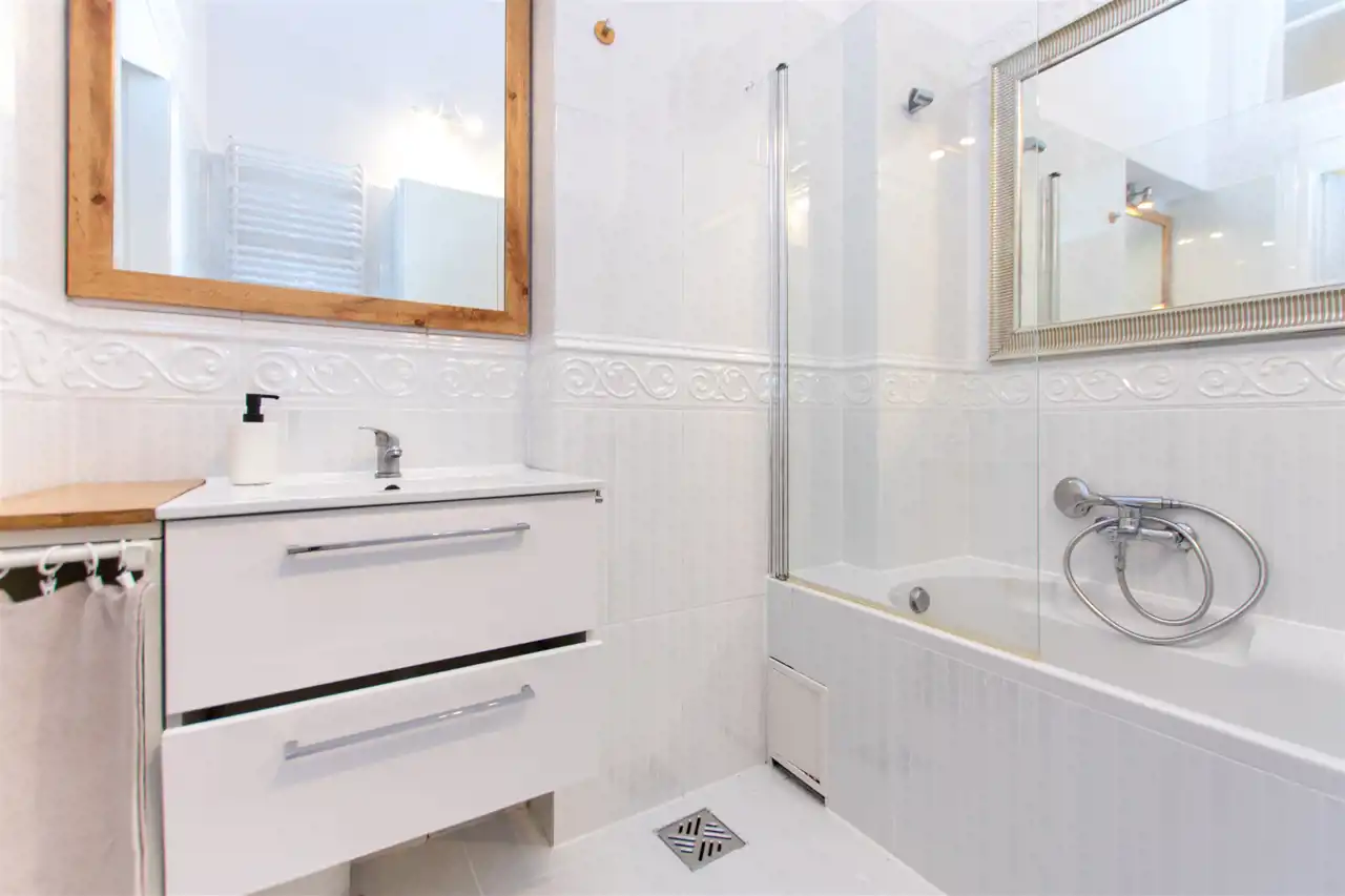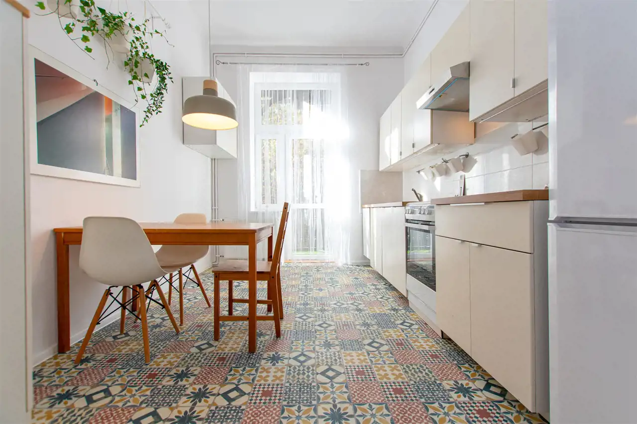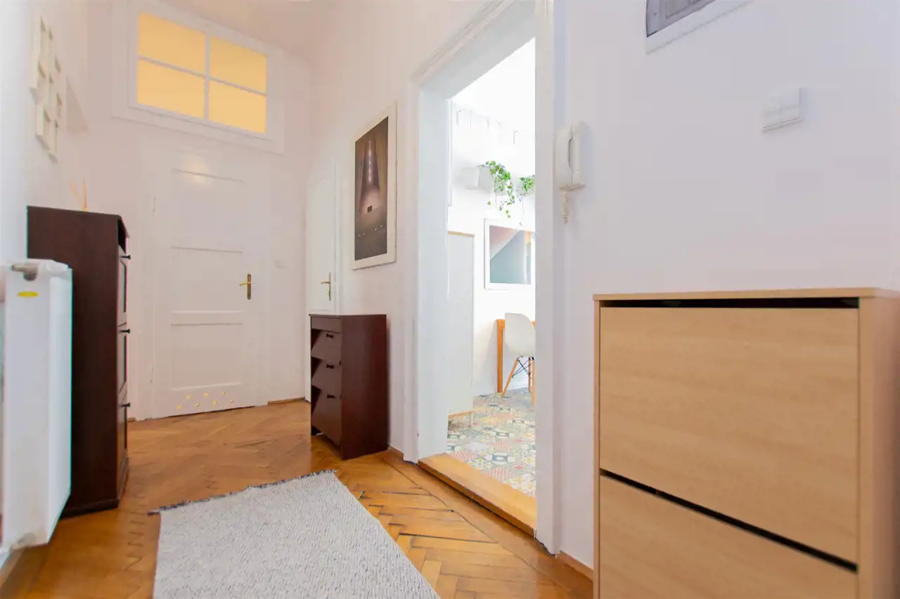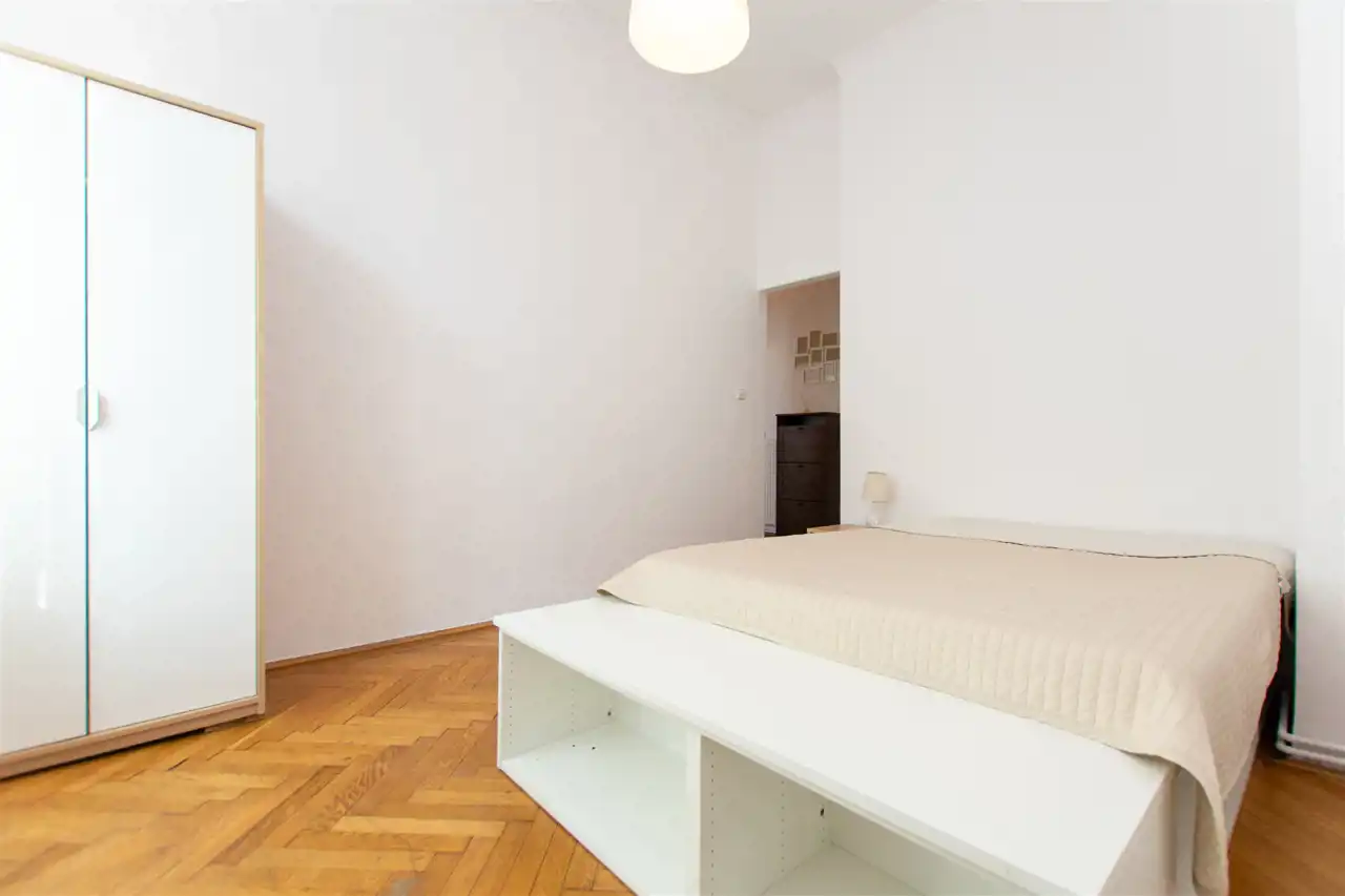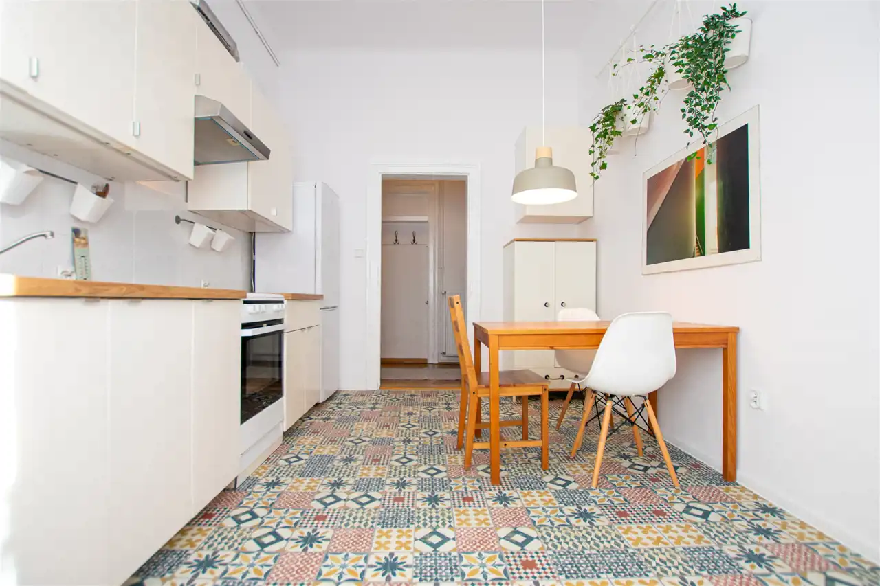 Kuchnia wyposażona jest w płytę ceramiczną dwustanowiskową, piekarnik, lodówko-zamrażarkę, zlewozmywak, zmywarkę. Miejsce na przechowywanie zapewniają dwie duże szafy. Mieszkanie zostało odmalowane i odświeżone. Ogrzewanie i ciepła woda z nowoczesnego gazowego pieca II-funkcyjnego z zamkniętą komorą spalania. Kamienica ma dostęp do Internetu światłowodowego.