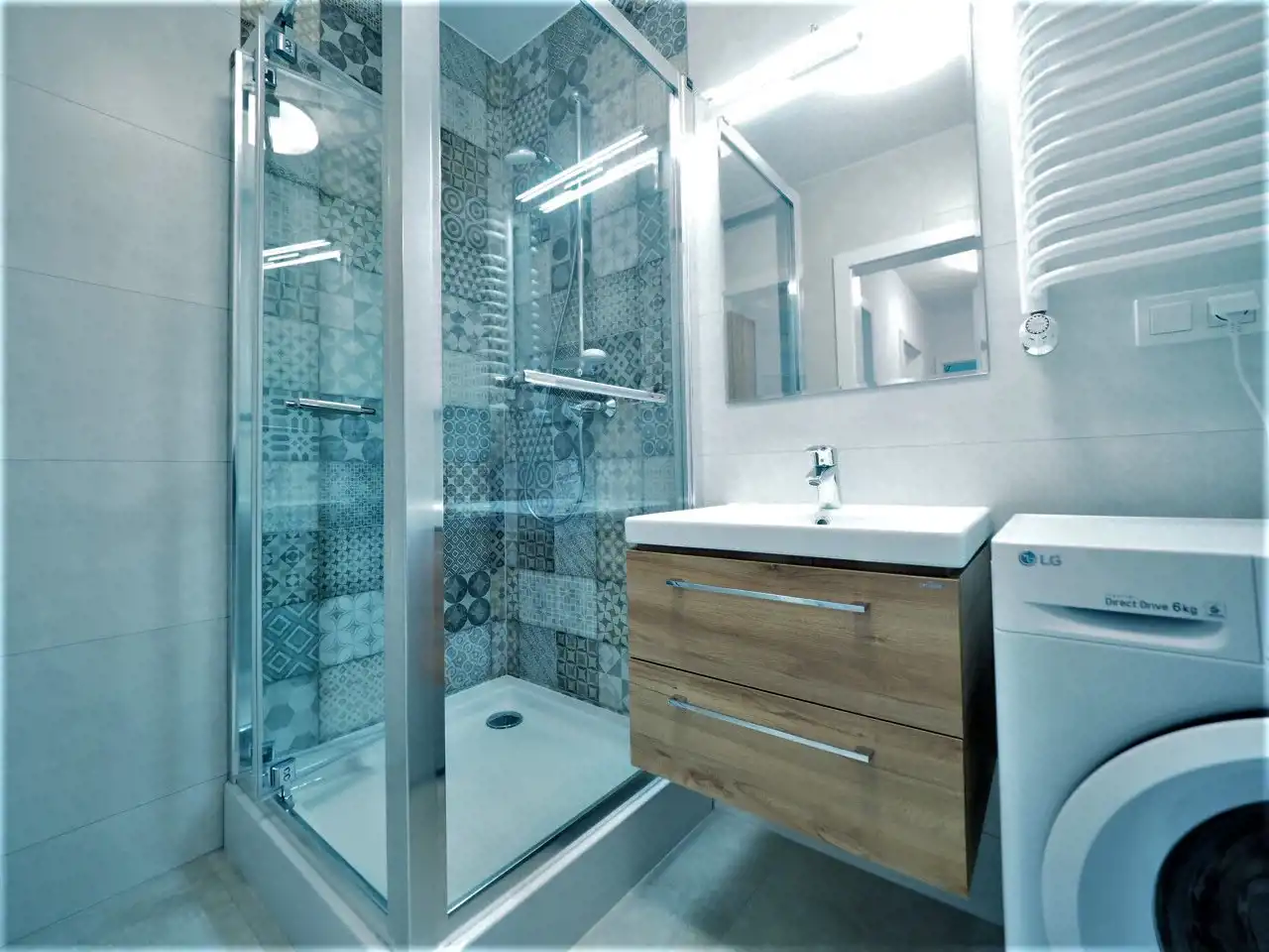 Nowocześnie urządzona nieruchomość o powierzchni 49 m2 znajduję na 6 piętrze w dziesięciopiętrowym budynku z windą (Inwestycja zrealizowana w 2018 r.).