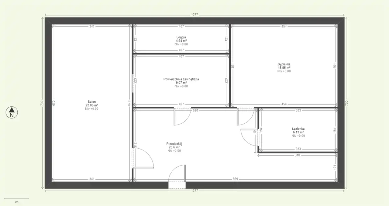 - Charakterystyka mieszkania 49 m2, 2 pokoje
