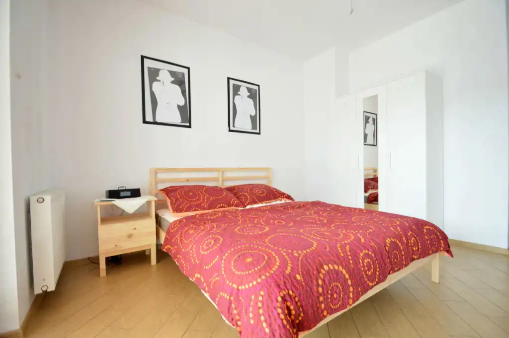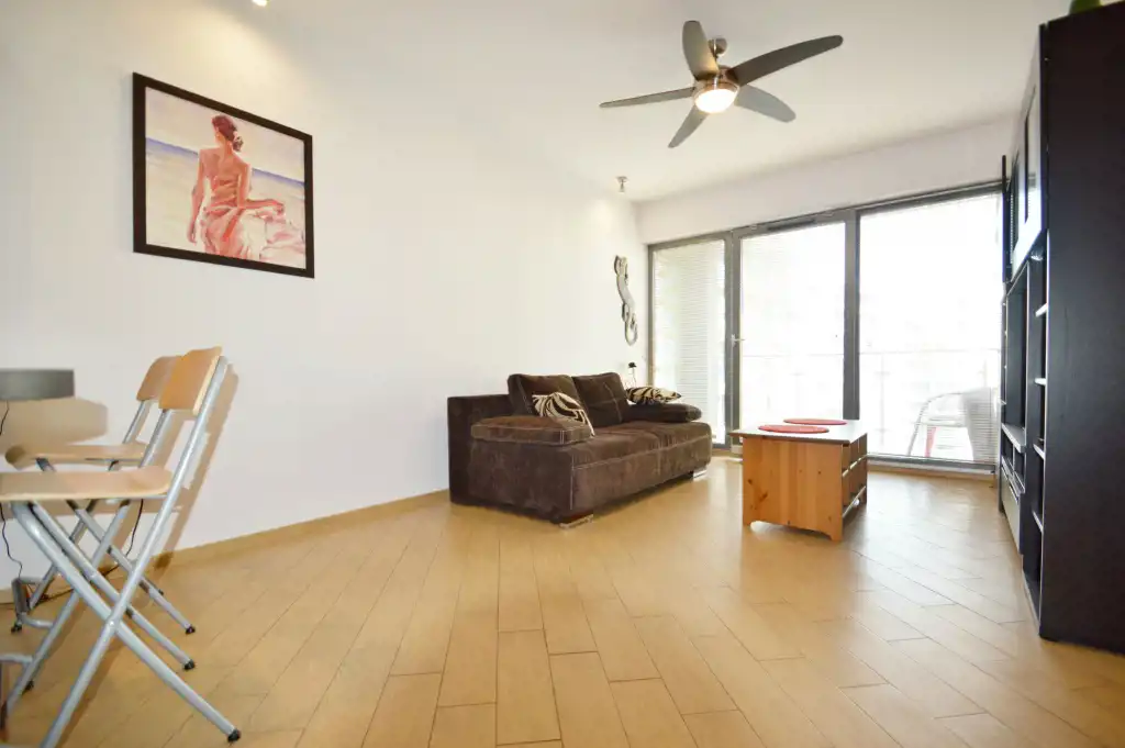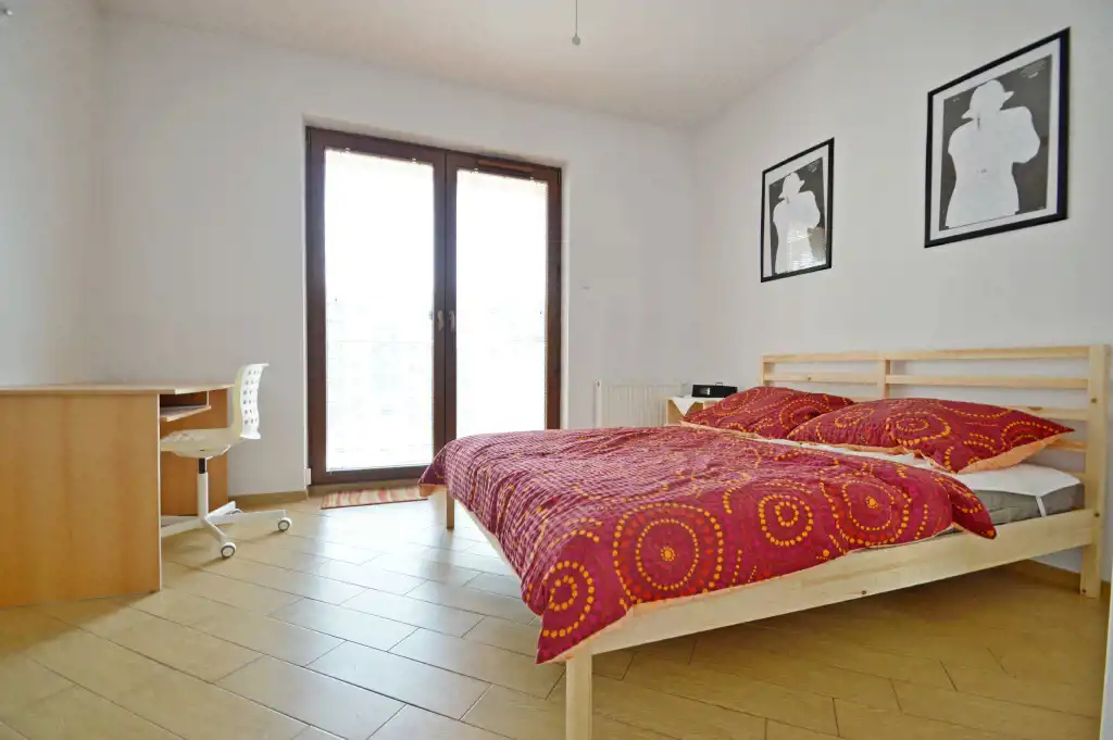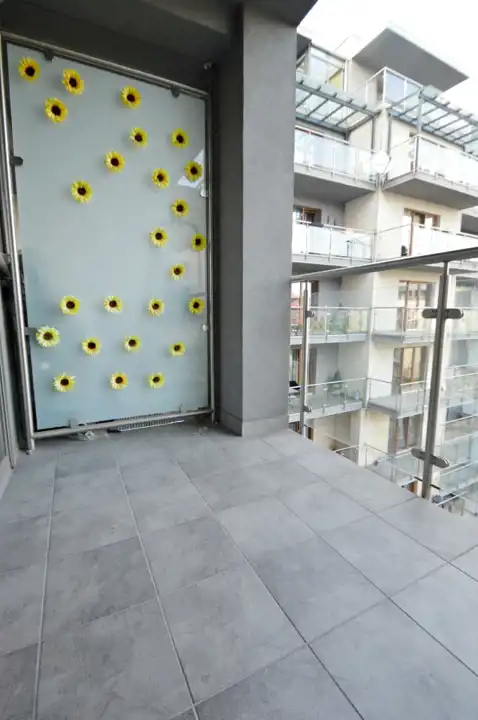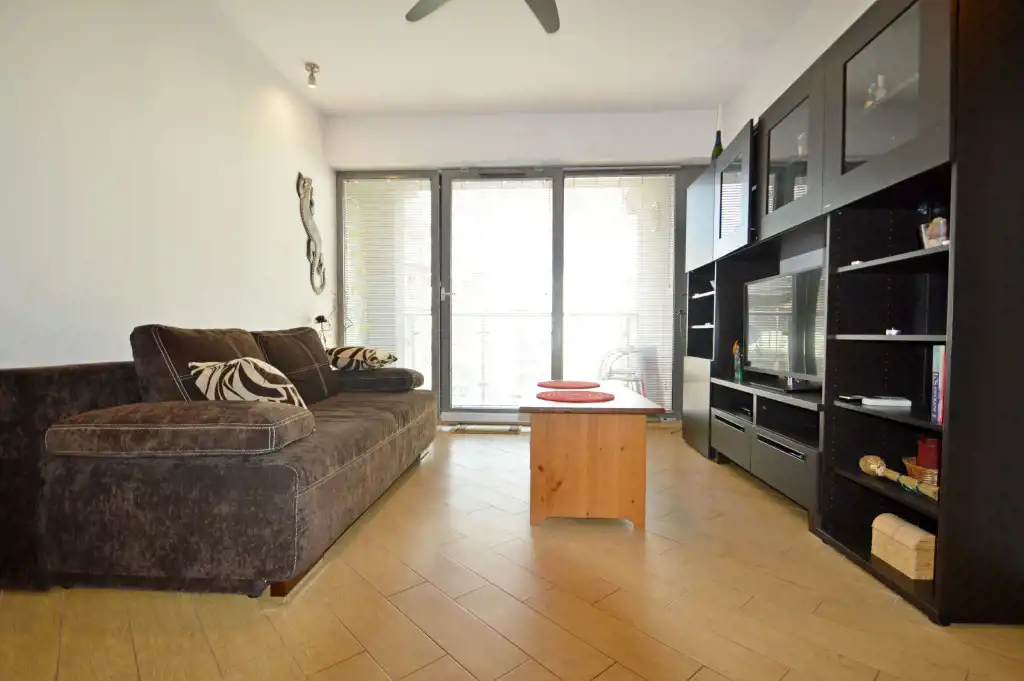 Prezentowany apartament o powierzchni 52 m2 składa się z salonu połączonego z aneksem kuchennym i dużym balkonem, sypialni z balkonem, łazienki oraz przedpokoju.